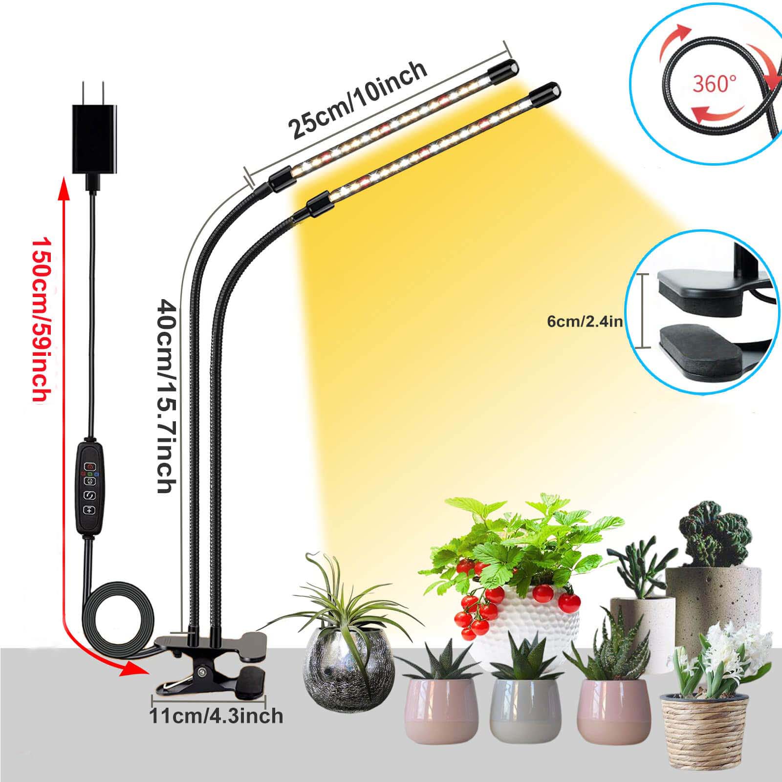✅ 【Легкая установка, прикрепленный адаптер】 Эта растительная лампа оснащена гибкой и долговечной густой шеей и прочным зажимом, а общая длина кабеля составляет 1,5 метра, благодаря которой могут появиться светодиодные садовые лампы. Питается на USB или Power Plug. Лампа для роста растений оснащена неразличительной подушкой.