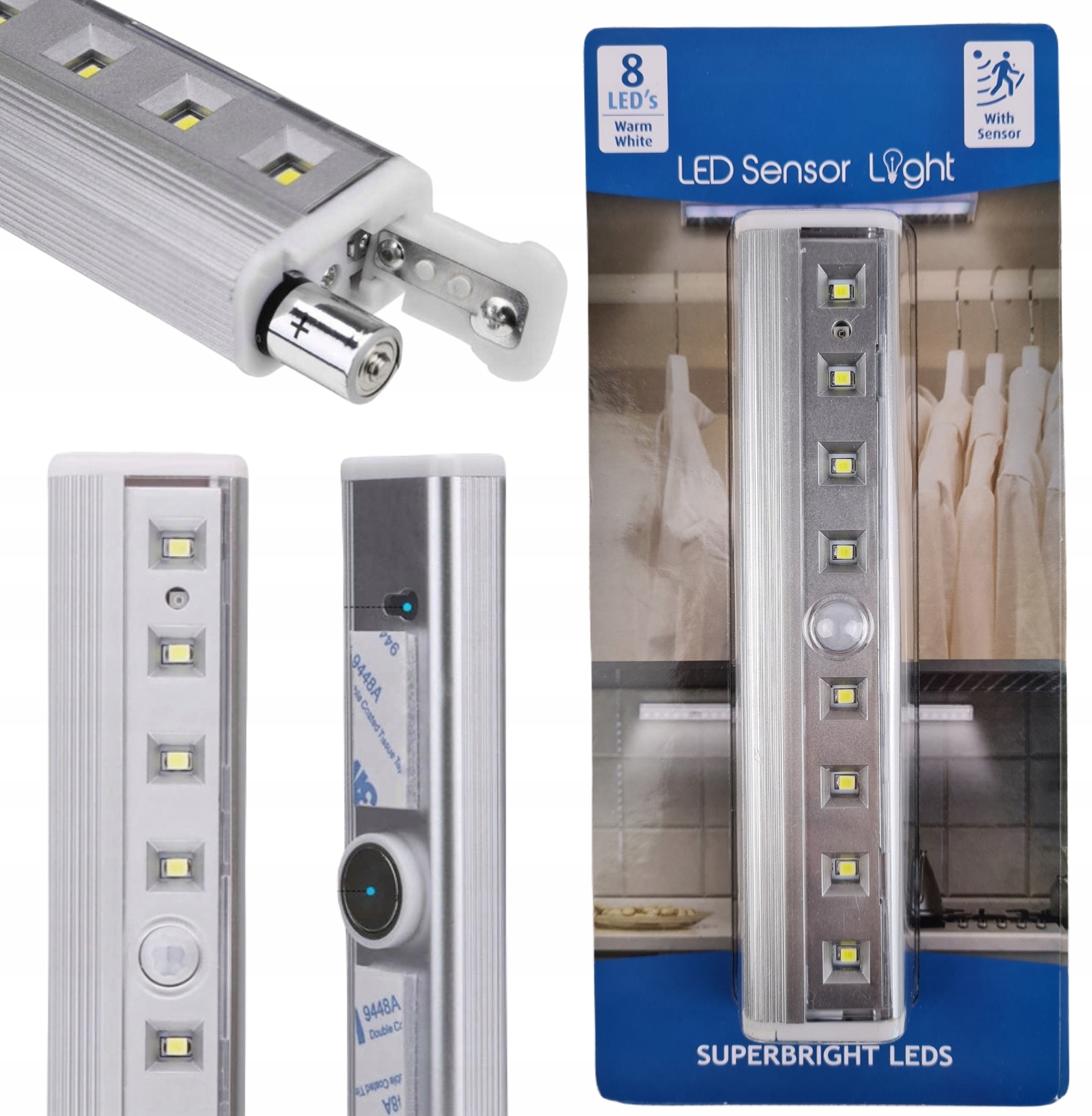 2x ЛАМПА ЛАМПОВАЯ ПОЛОСКА ДЛЯ ШКАФА 8 СВЕТОДИОДНЫХ ДАТЧИКОВ ДВИЖЕНИЯ НА БАТАРЕЯХ МАГНИТ Allbrand