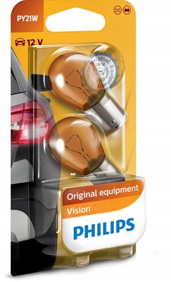 2x лампочки PHILIPS PY21W BAU15s 12V VISION + 30%