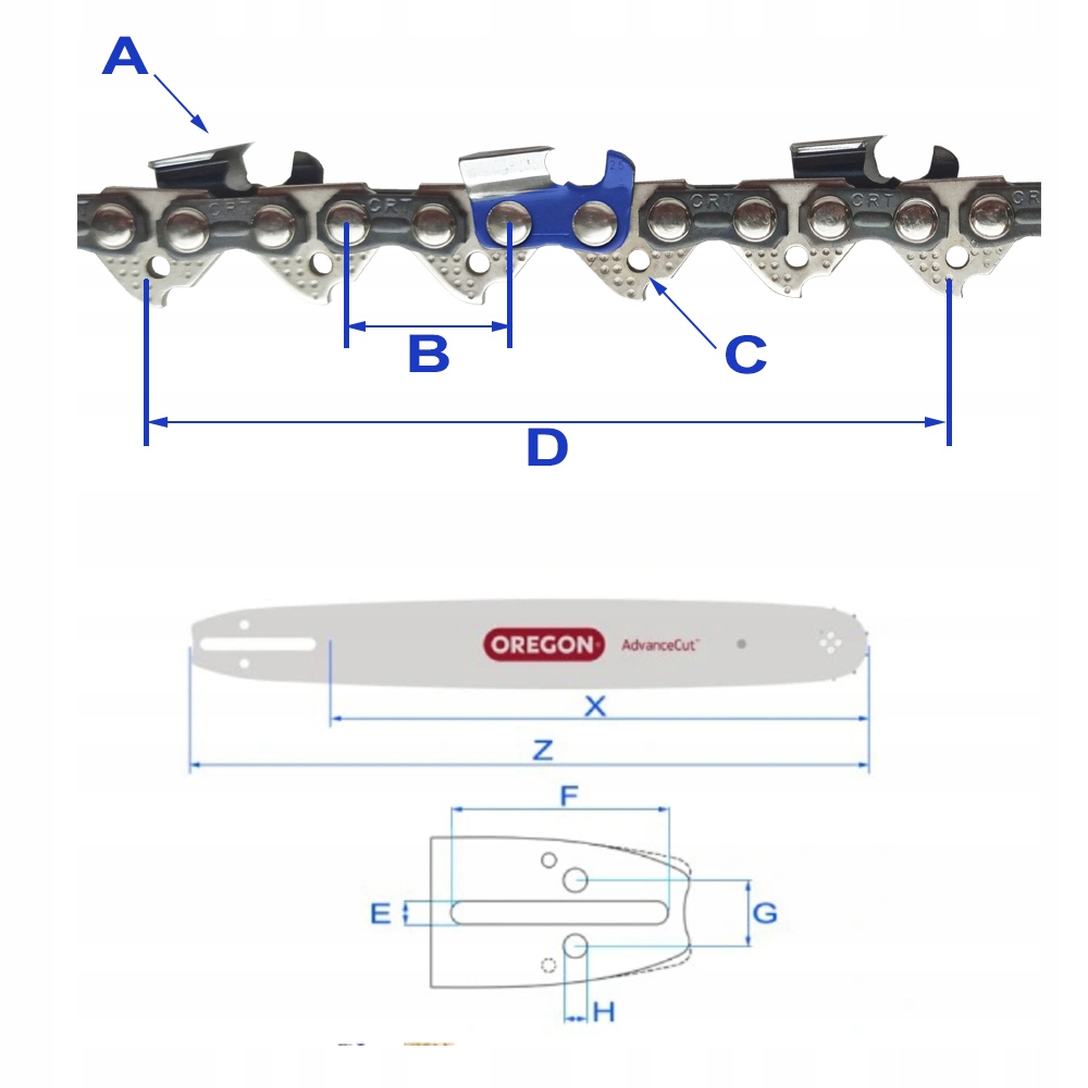 16 дюймов | 40 см | 0,325 дюйма | 1,5 мм — 0,058 дюйма | 66 ссылок | 33 режущих зуба