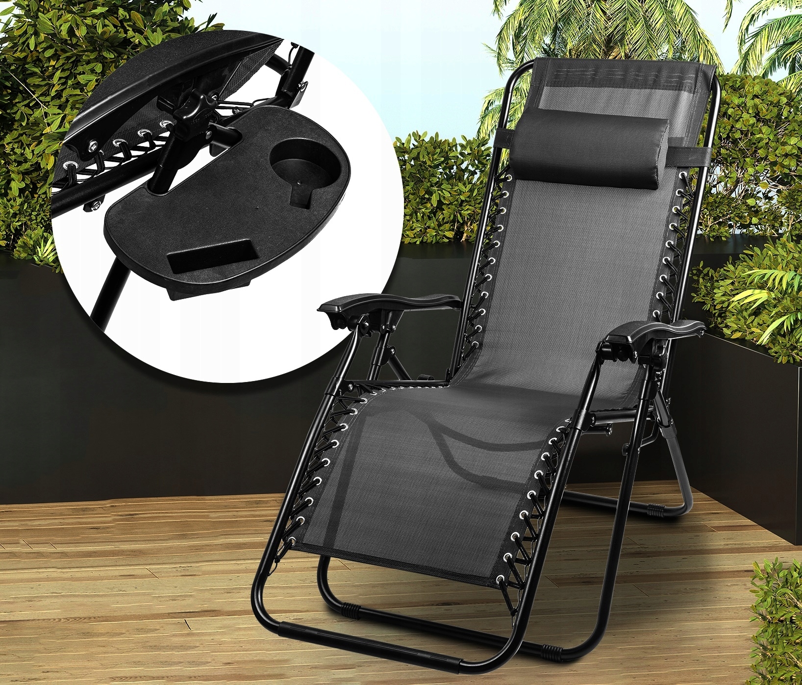 2x LEŻAK OGRODOWY SKŁADANY ZERO GRAVITY plażowy FOTEL ZAGŁÓWEK+STOLIK MOCNY