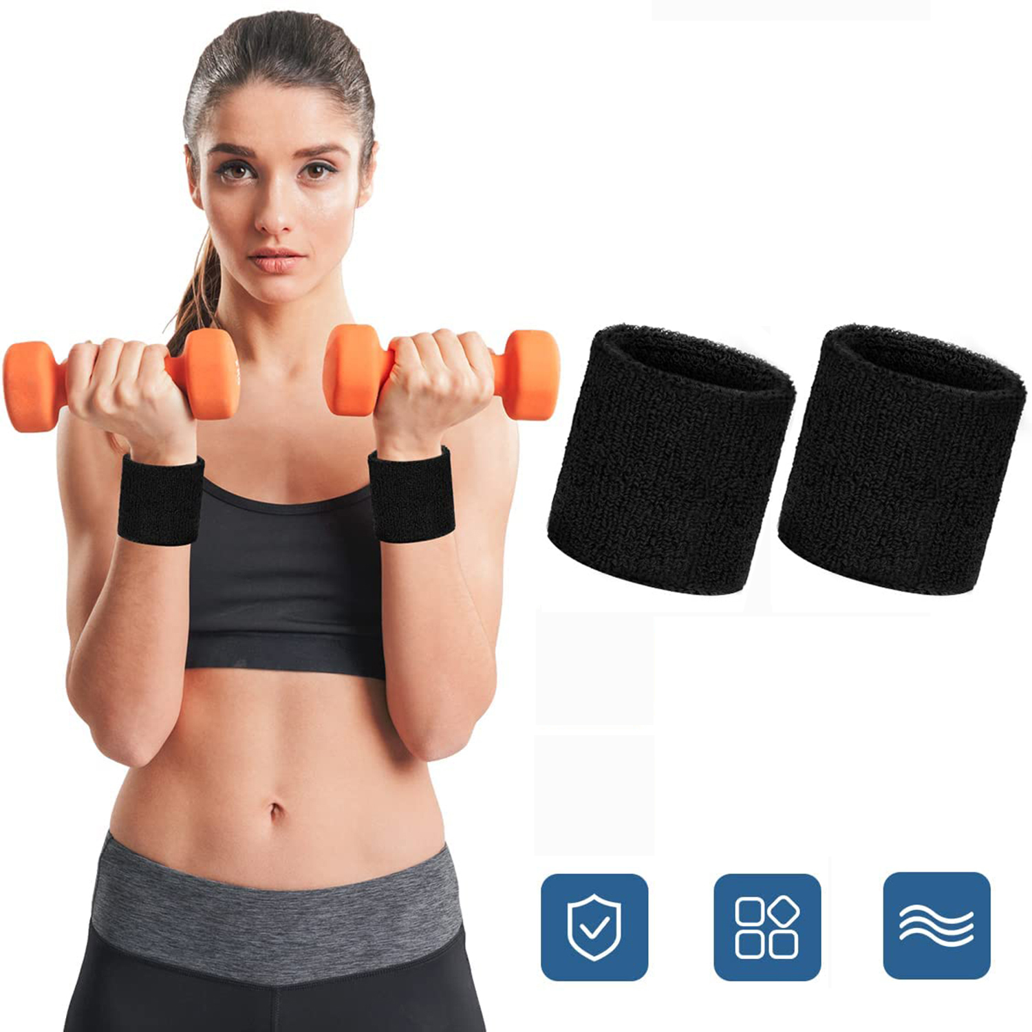 2x ТЕРРИ ТЕРРИ ЗАПЯСТЬЯ СПОРТИВНЫЙ КОМПЛЕКТ ДЛЯ БЕГА, ЧЕРНЫЙ КОМПЛЕКТ