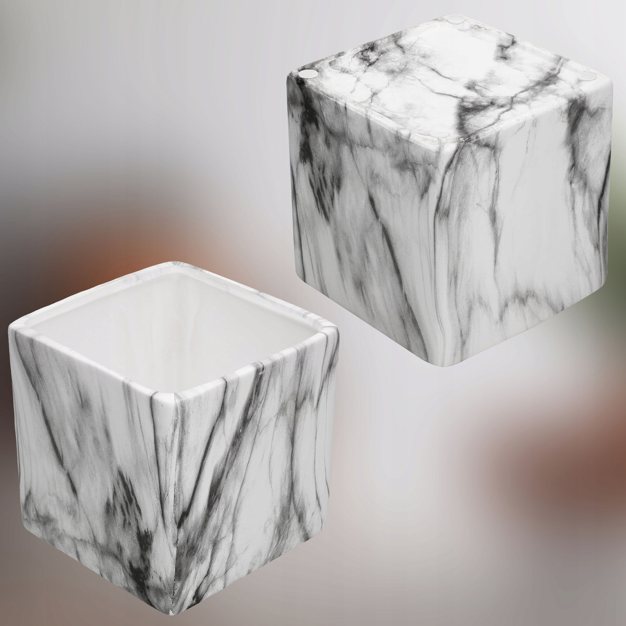 2x МРАМОРНЫЙ ЦВЕТОЧНЫЙ ГОРШОК 12x12 КВАДРАТНЫЙ ЦВЕТОЧНЫЙ ГОРШОК КРЫШКА ДЛЯ ЦВЕТОВ, РАСТЕНИЙ, КЕРАМИКА