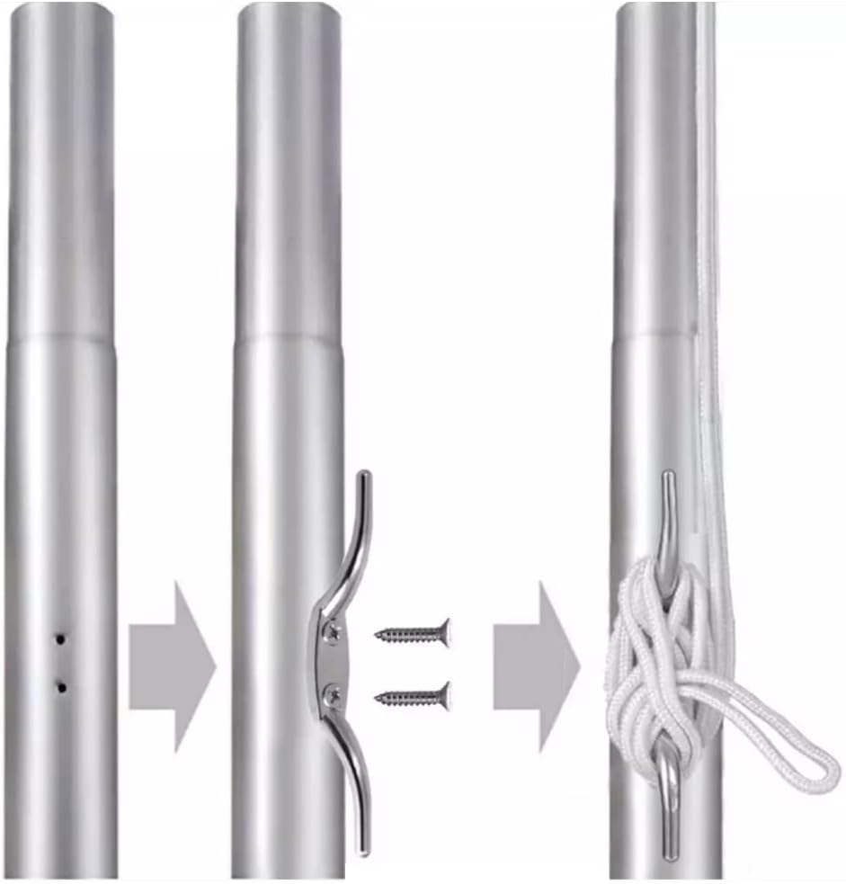 Полностью полированная. отделка, большое основание для поддержки, позволяет плотно и безопасно натянуть веревку и предотвратить ее сдувание ветром.
