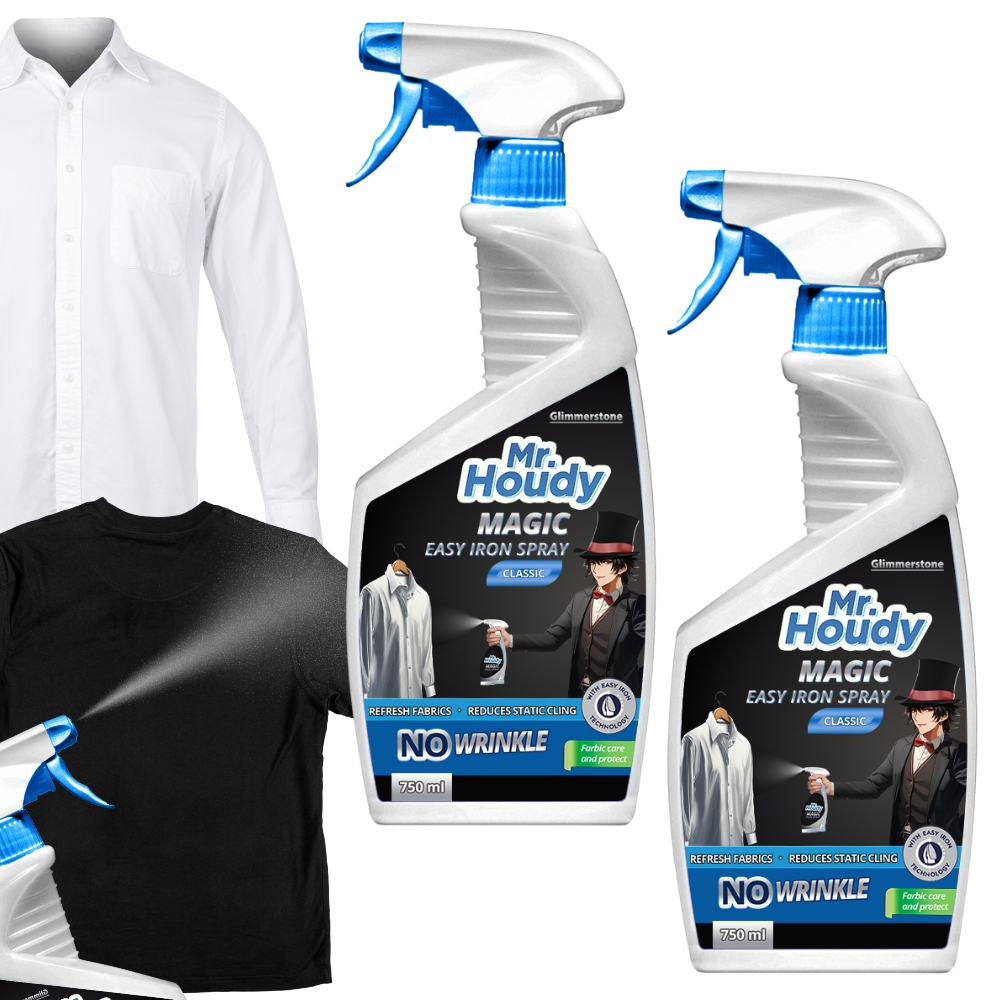 2x Mr. Houdy IRON SPRAY ЖИДКОСТЬ ДЛЯ ГЛАЖЕНИЯ УТЮГАМИ БЫСТРО, НЕ ОСТАВЛЯЕТ ПЯТЕН 750мл