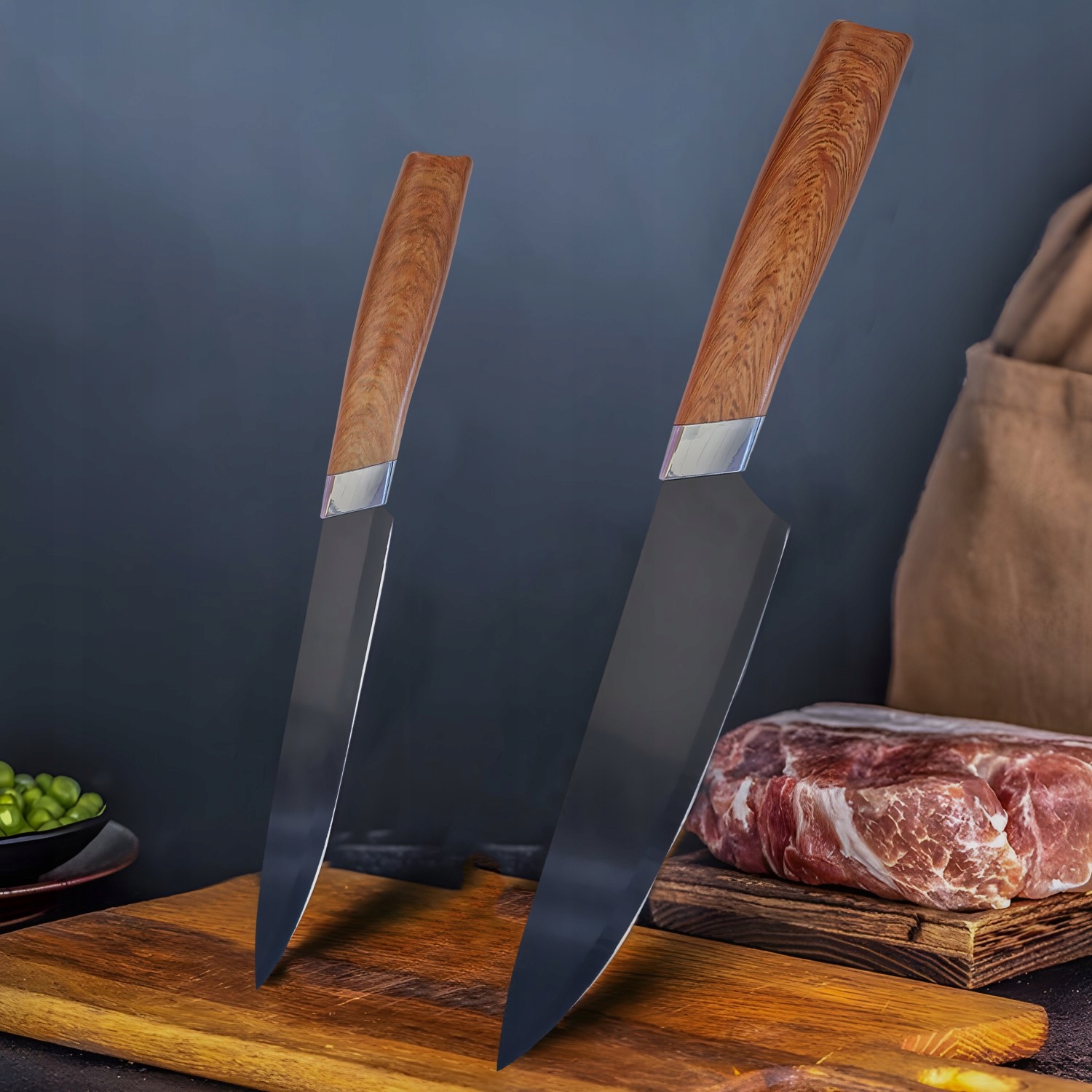 ✔️ Эргономичный дизайн создан с учетом удобства использования. Каждый нож идеально лежит в руке, что облегчает манипулирование им при приготовлении блюд. Это комфорт, который вы почувствуете с первого разреза!
