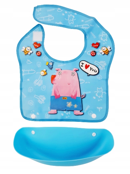 Нагрудник имеет жесткий карман для остатков еды, что облегчает поддержание чистоты во время еды.
