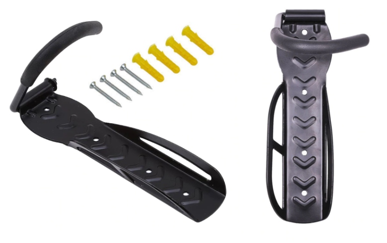 - Вешалка используется для хранения велосипеда на стене.