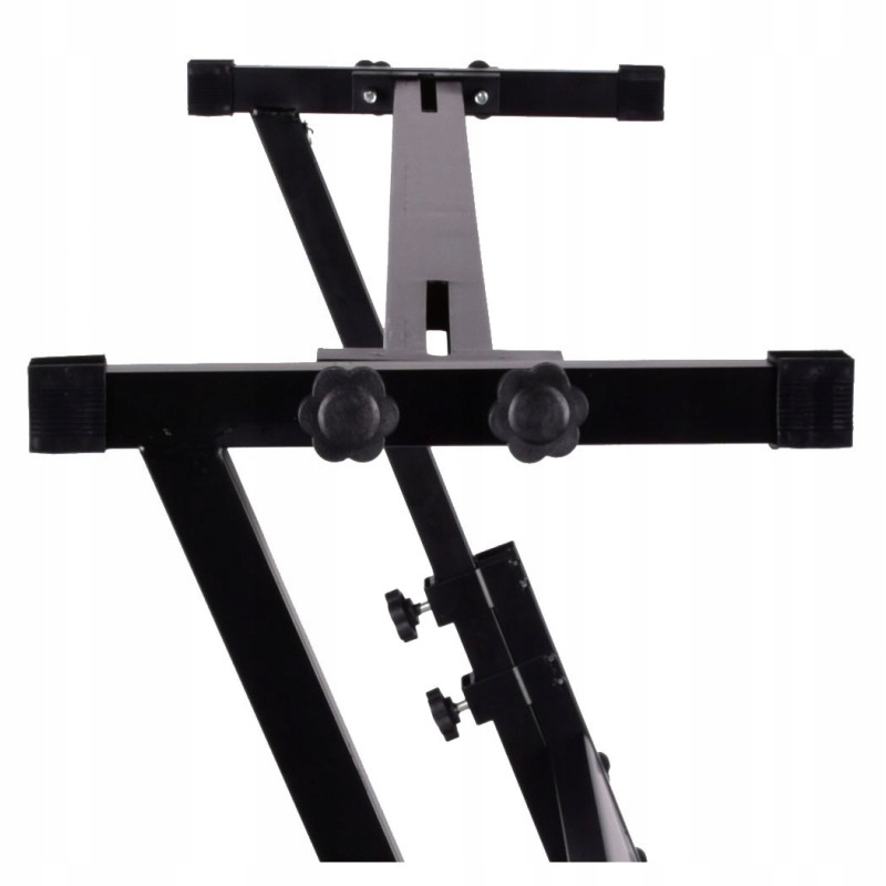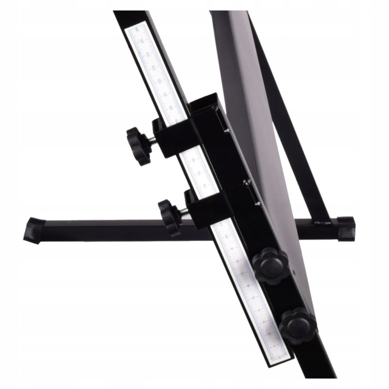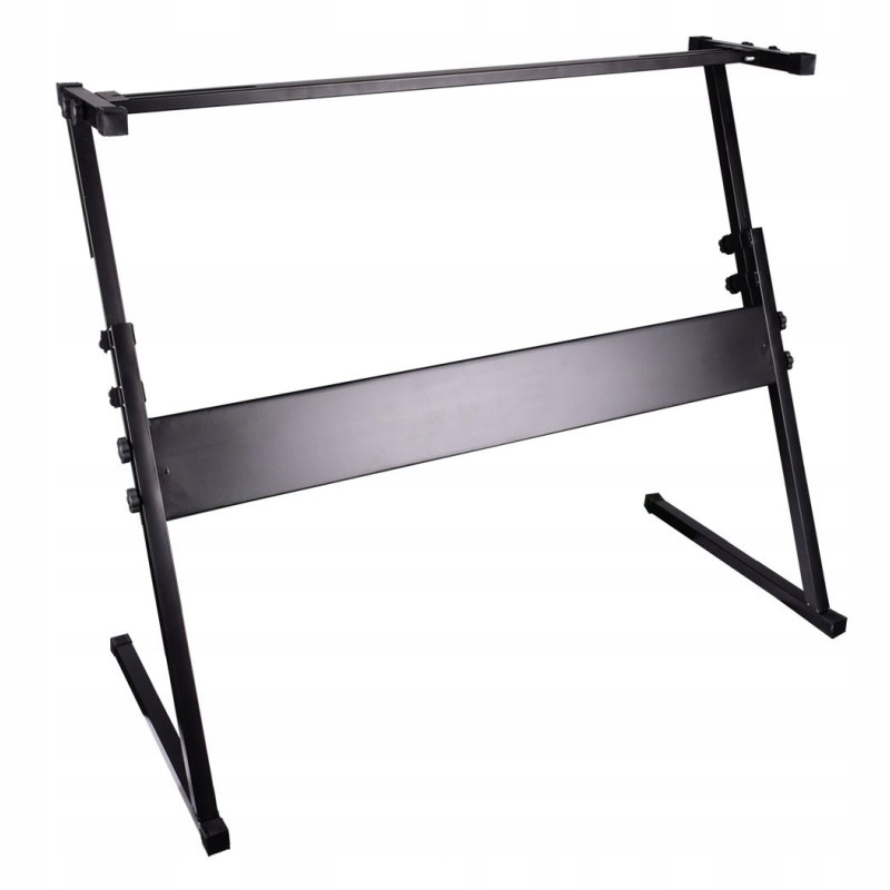 Надежная и очень удобная подставка для клавиатуры, цифрового пианино или синтезатора звука, которая после добавления столешницы также может функционировать как диджейский стол. Подставка полностью изготовлена из стальных профилей с порошковым покрытием черного цвета, что делает ее устойчивой к царапинам и ржавчине. Высота регулируется от 49 до почти 80 см. Это позволяет комфортно играть как сидя, так и стоя. Прочные опоры для инструментов с усиливающей перекладиной имеют нескользящие накладки на концах, которые надежно удерживают клавиши на месте. Глубокие основания на резиновых ножках обеспечивают высокую устойчивость всей конструкции и предотвращают ее скольжение по земле. Раздумывая, какую подставку для клавиатуры выбрать, стоит обратить внимание на эту модель. Это идеальное решение как для любителей, так и для профессиональных музыкантов. Он идеально подходит для домашнего использования, в репетиционных залах, а также во время концертов, свадеб и различных торжественных мероприятий.