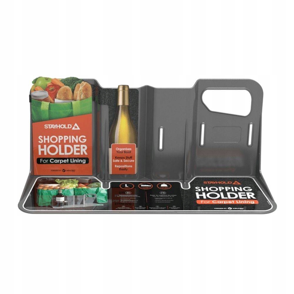 STAYHOLD Carpet Large — органайзер из прочного пластика, который, будучи прикреплен к ковру багажника, помогает предотвратить падение незакрепленных предметов во время вождения.