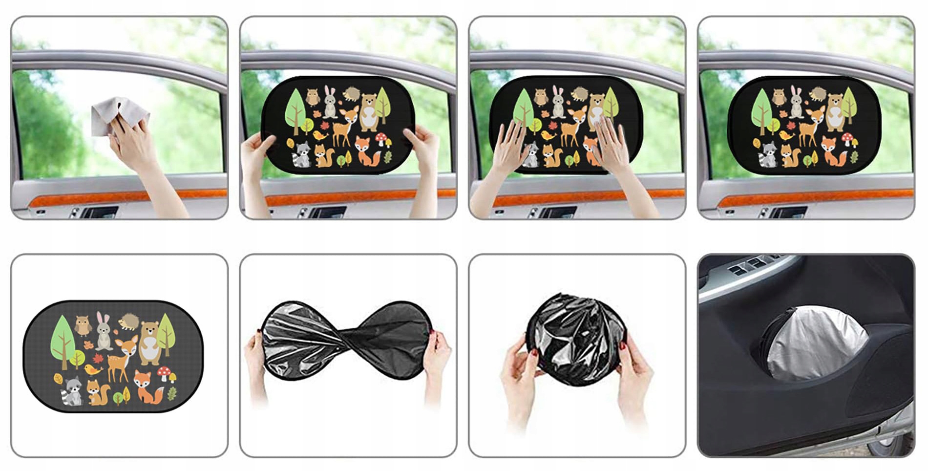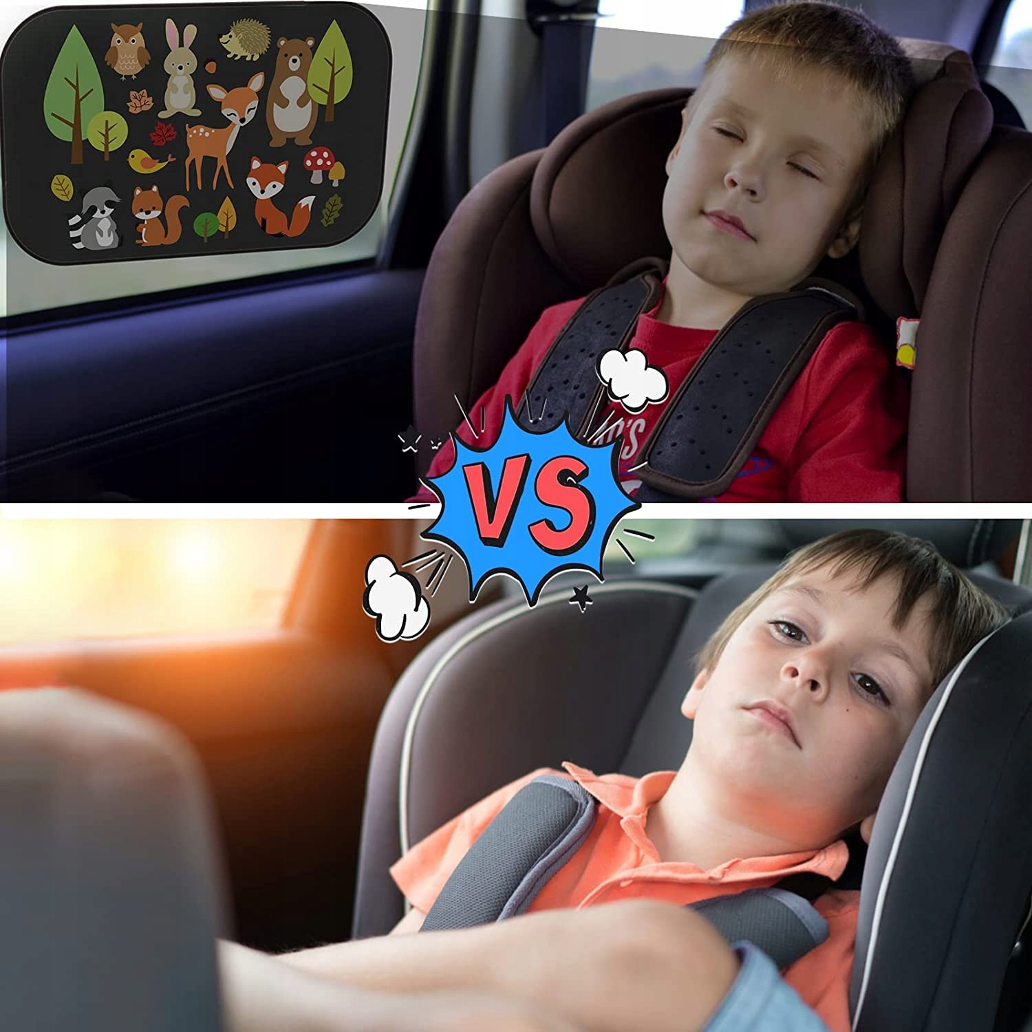 Крышки автомобилей обеспечивают 98% защиту от ультрафиолета и тепла, что соответствует коэффициенту защиты 30+. Он блокирует ультрафиолетовые лучи солнца, защищает ребенка от ожогов и перегрева, дает ребенку больший комфорт во время вождения. > Забавный дизайн в стиле, охватывающем многих животных, дает больше удовольствия детям и детям. Смешные дизайны мультфильмов могут вызвать интерес к вашим детям и младенцам и увеличить удовольствие от путешествия на автомобиле. автомобиль, без необходимости использовать всасывающие чашки или клей