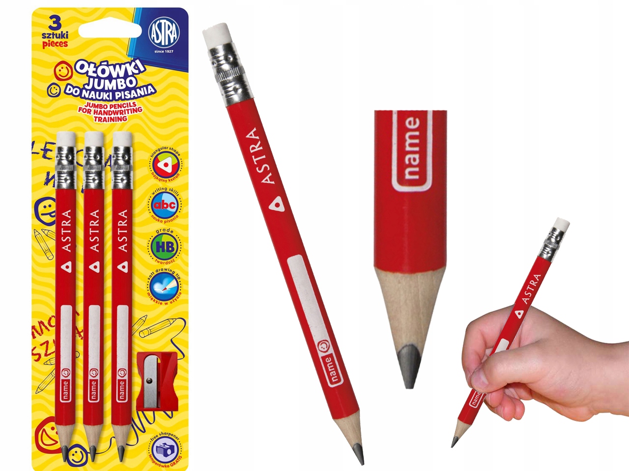 2x карандаша Astra Jumbo для обучения письму, с ластиком, HB, треугольный, 3 шт. + точилка< /h1>