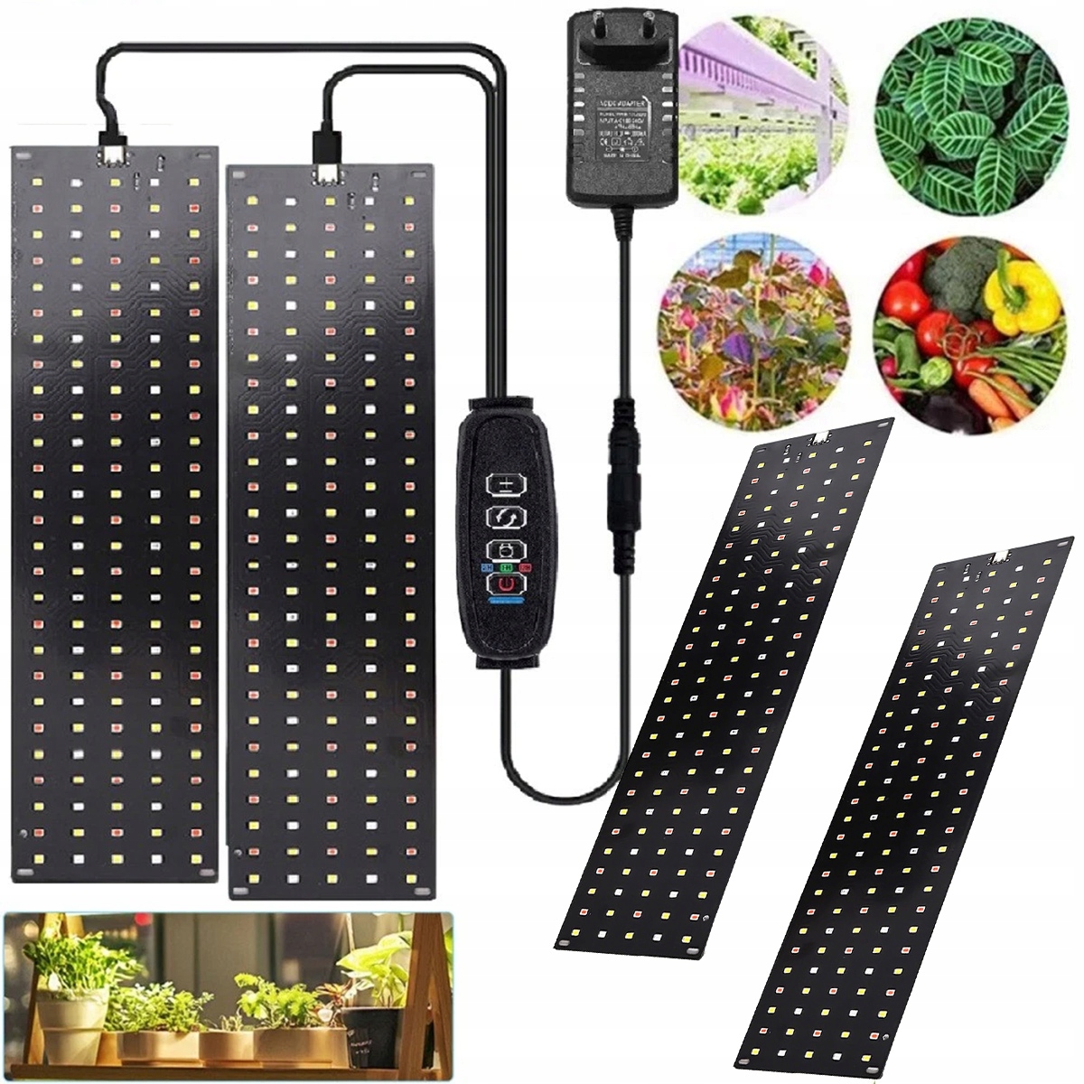 2 ультратонких светильника для растений (30 x 8 x 0,15 см) с алюминиевой задней панелью, которые выделяют мало тепла и обеспечивают превосходное рассеивание тепла, более прохладные, чем аналогичные модели. Научно оптимизированные световые волны (95 % поглощения растениями) имитируют естественный солнечный свет, а научно оптимизированный спектр света заметно ускоряет рост растений, потребляя всего 20 Вт (экономия энергии 90 % по сравнению со стандартными светодиодами).