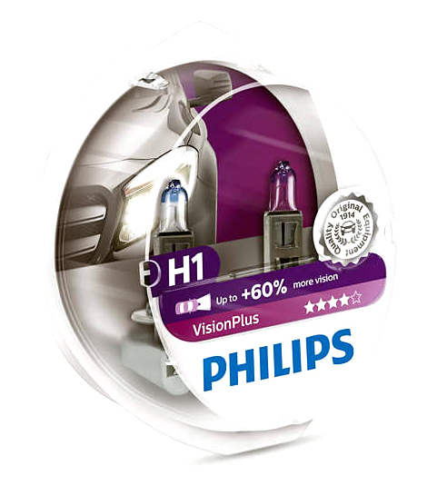 НАБОР ЛАМПОЧЕК PHILIPS VisionPlus + на 60 % БОЛЬШЕ СВЕТА