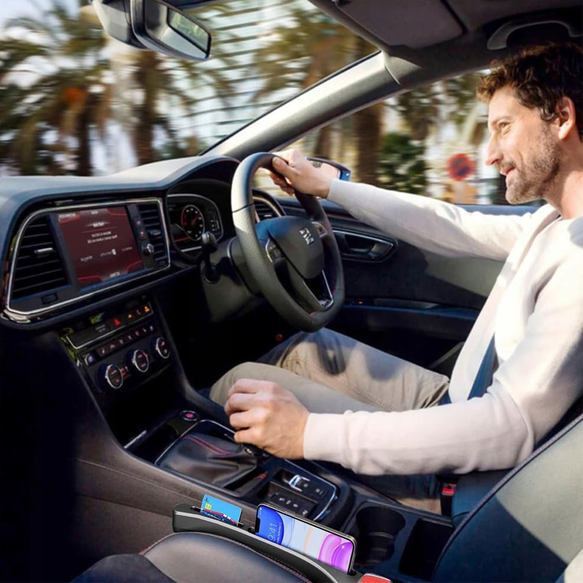 � ● Разрыв в автомобильном кресле может предотвратить мобильный телефон, карту или мелкие предметы внутри, что затрудняет повышение этих предметов и позволит вам безопасно ездить. Один большой и два небольших отсека для мобильных телефонов, кредитных карт и т. Д.