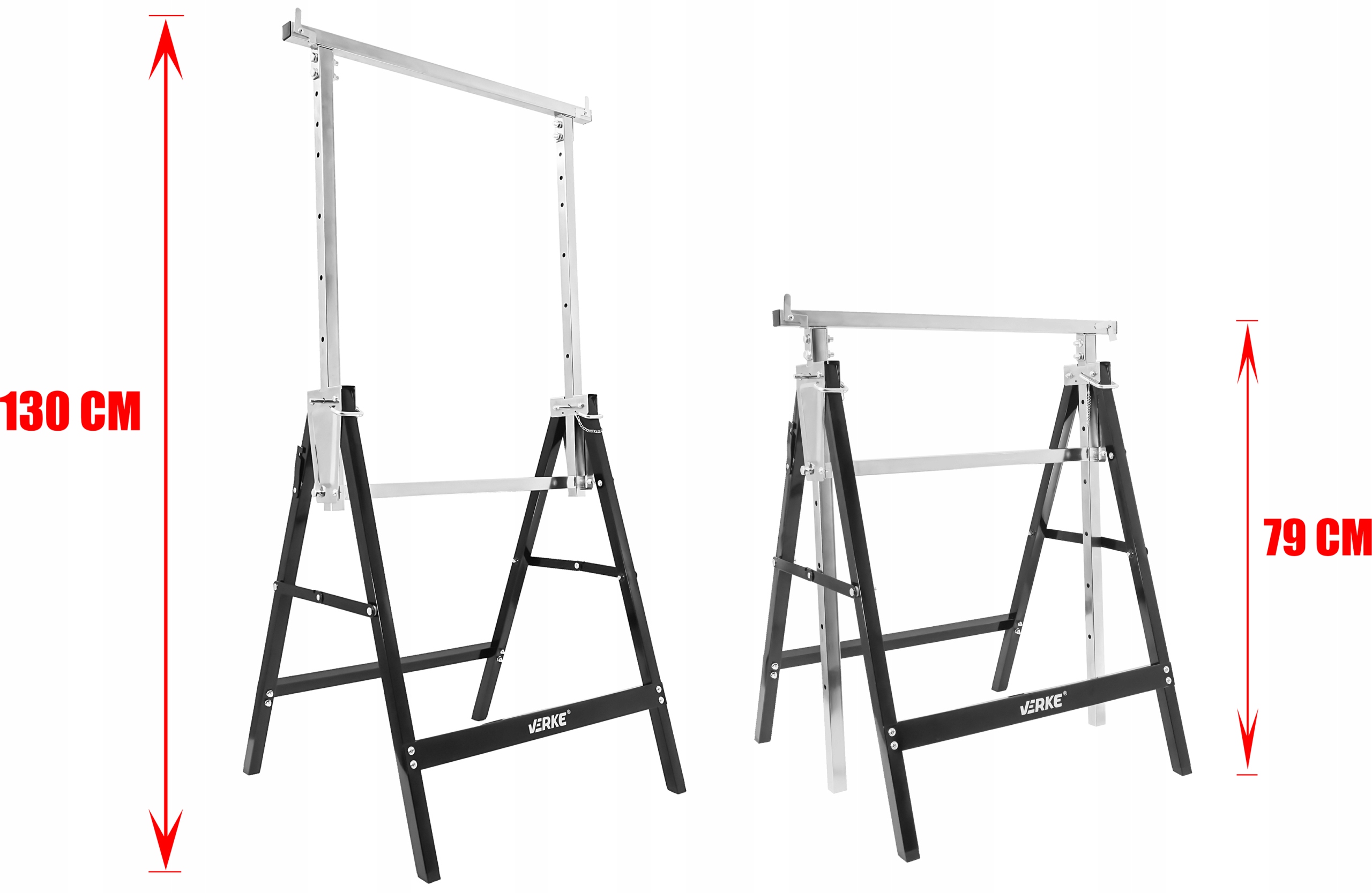 - Регулировка высоты до 1300 мм позволяет легко настроить козел под индивидуальные нужды пользователя.