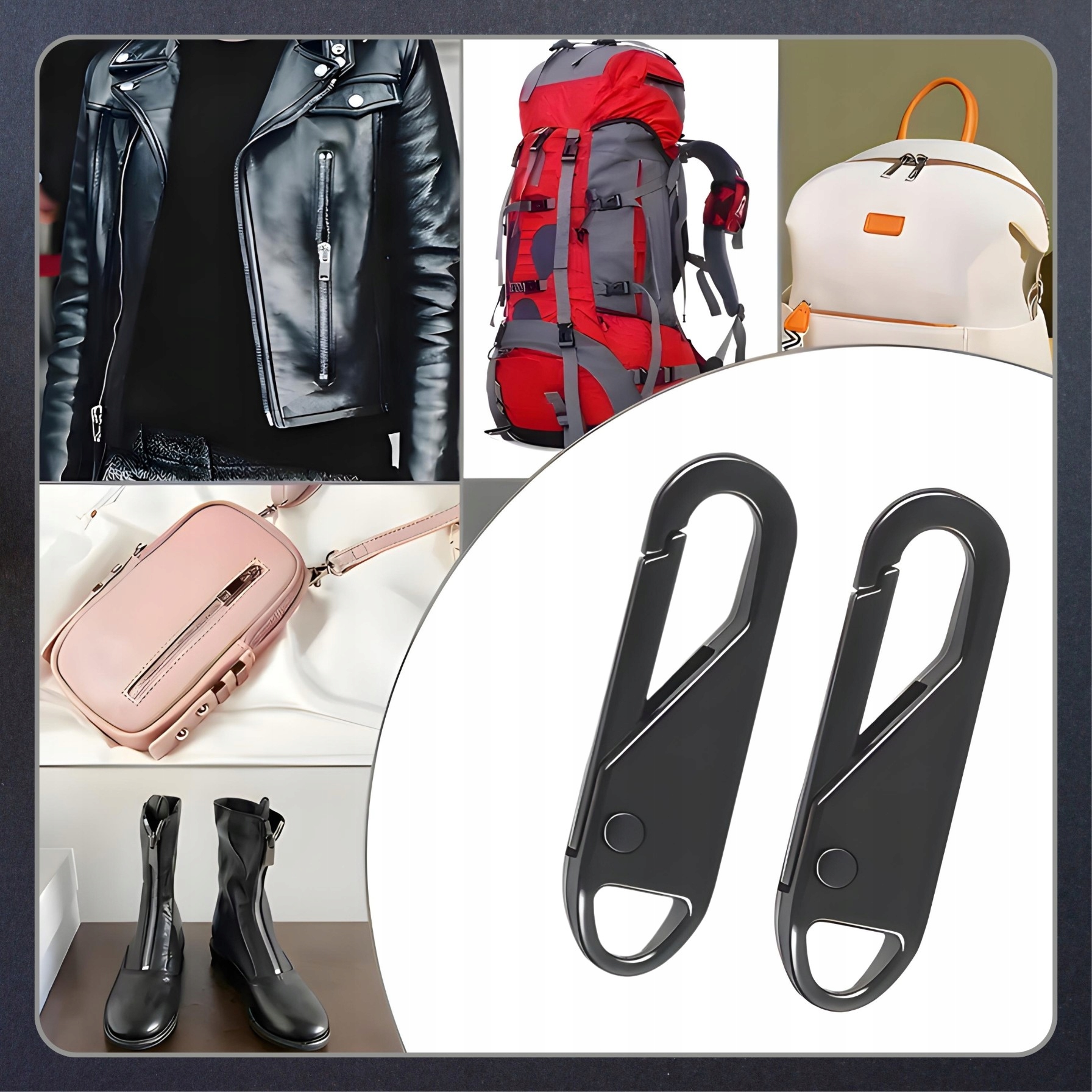 - Вешалки для молний — это универсальное решение, подходящее к различным типам молний. Их можно использовать в куртках, сумках, рюкзаках, чемоданах и других предметах, требующих быстрого ремонта или замены ручки.