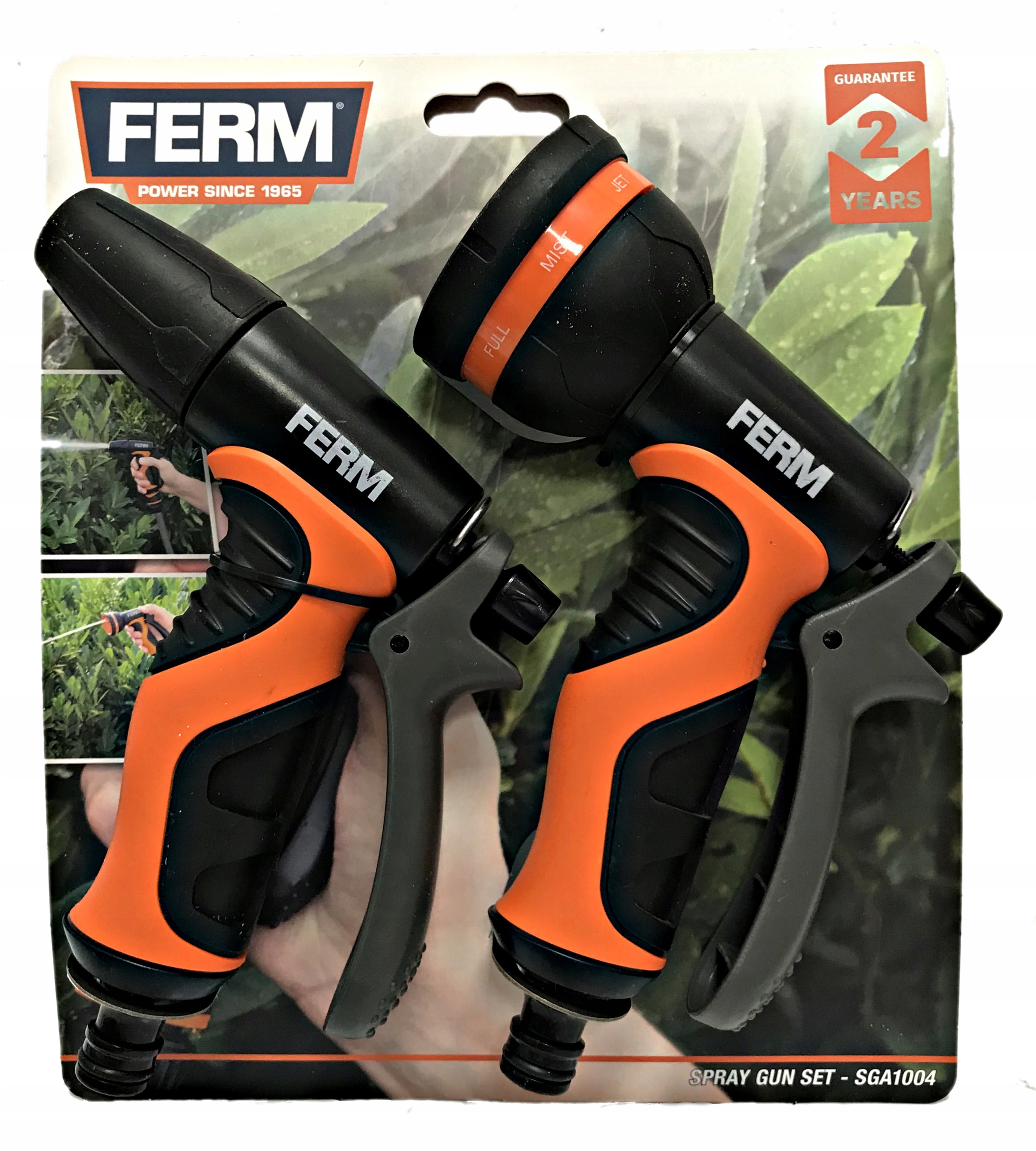 Набор распылителей FERM SGA1004 идеально подходит для всех ваших задач по ирригации благодаря 8 различным схемам распыления. универсального сопла и регулируемого радиуса распылителя. Резиновая мягкая ручка обоих пистолетов-распылителей обеспечивает очень удобный захват, благодаря чему полив растений, мытье стен, мытье автомобиля и многие другие работы с помощью садового шланга становятся намного проще и удобнее!
