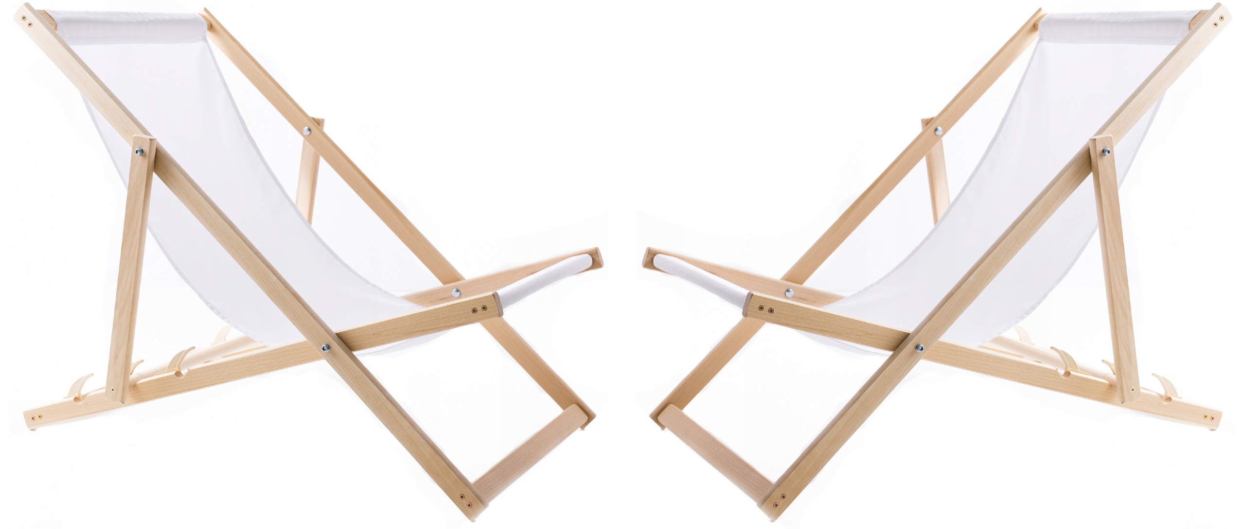 2X ПЛЯЖНИЙ ШЕЗЛОНГ САДОВИЙ ДЕРЕВ'ЯНИЙ РОЗКЛАДНИЙ WOODOK БІЛА ТКАНИНА