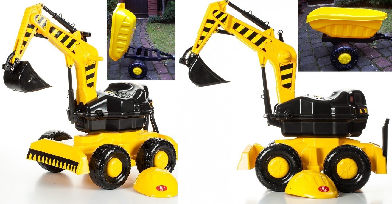РЕБЕНОК МОЖЕТ УПРАВЛЯТЬ ПОДВИЖНЫМ КОВШОМ ЭКСКАВАТОРА, ВРАЩАТЬСЯ НА ВРАЩАЮЩЕСЯ СИДЕНЬЕ НА 360 ГРАДУСОВ, А ТАКЖЕ ПЕРЕДАТЬ ВЕСЬ КОМПЛЕКТ ВПЕРЕД И НАЗАД, ПОДТЯГИВАЯСЬ НОГАМИ ВВЕРХ!