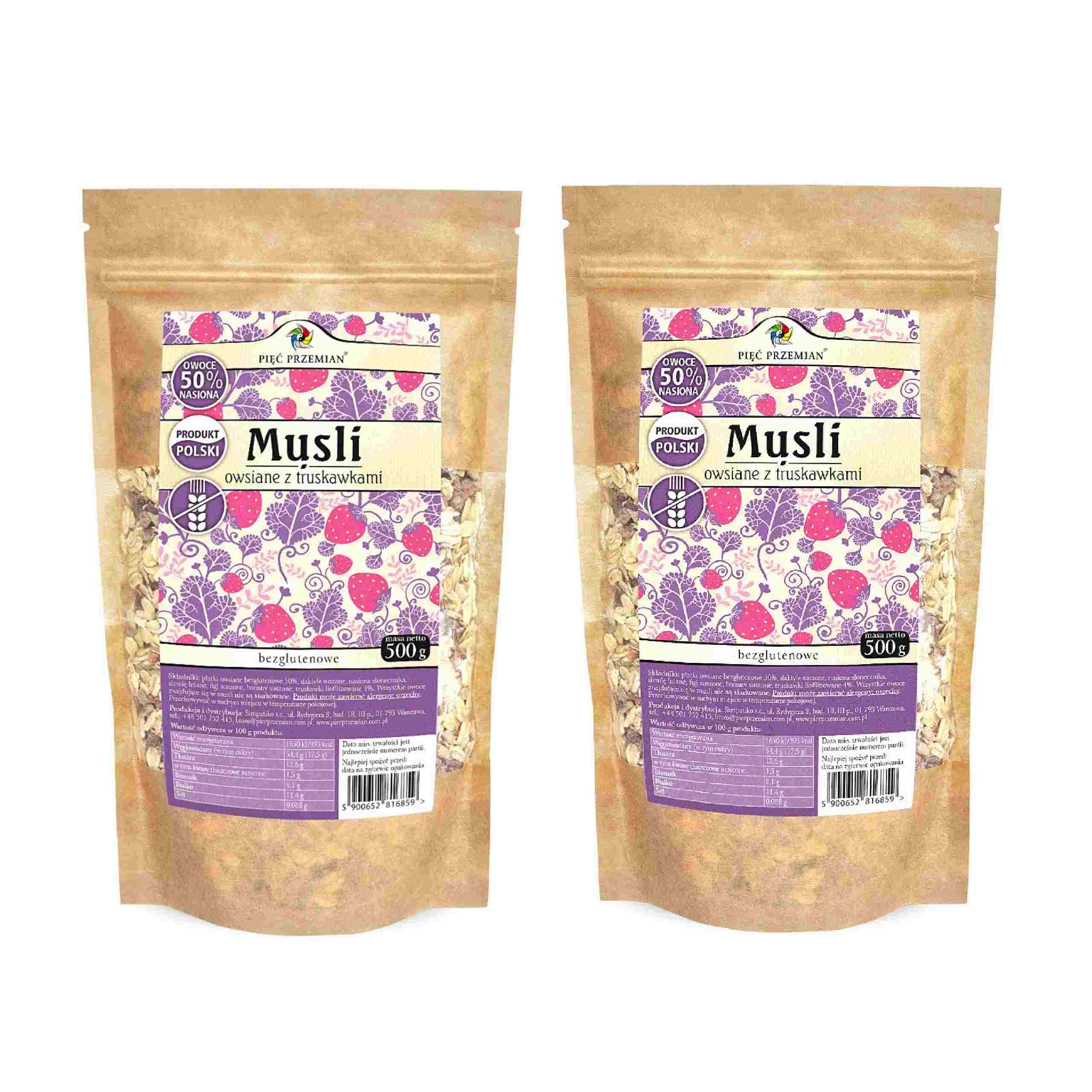 2x КЛУБНИЧНО-ОВСЯНЫЕ МЮСЛИ БЕЗ САХАРА И БЕЗ ГЛЮТЕНА 500 г ПЯТЬ ПРЕОБРАЗОВАНИЙ