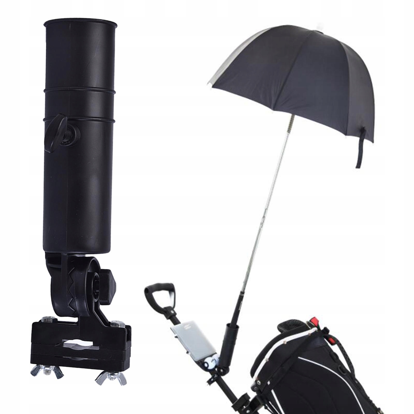 Прочный и простой монтаж: высококачественный держатель зонта для гольф-мобиля, очень прочный и долговечный. Простая установка на ручку гольф-мобиля.