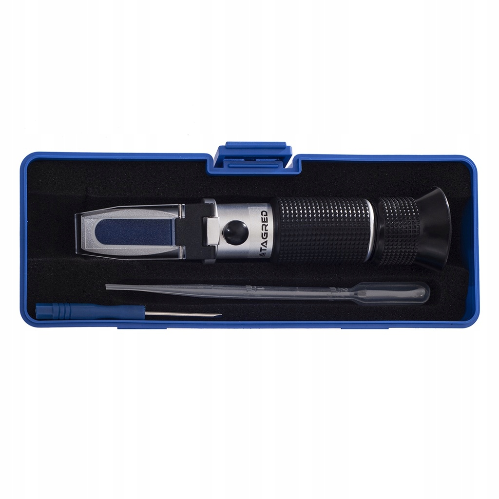 Профессиональный рефрактометр для измерения рабочих жидкостей в легковых, грузовых автомобилях и автобусах. Он предназначен для определения температуры замерзания жидкости омывателя ветрового стекла, охлаждающей жидкости на основе пропиленгликоля и этиленгликоля. Также предусмотрен диапазон плотности электролита.