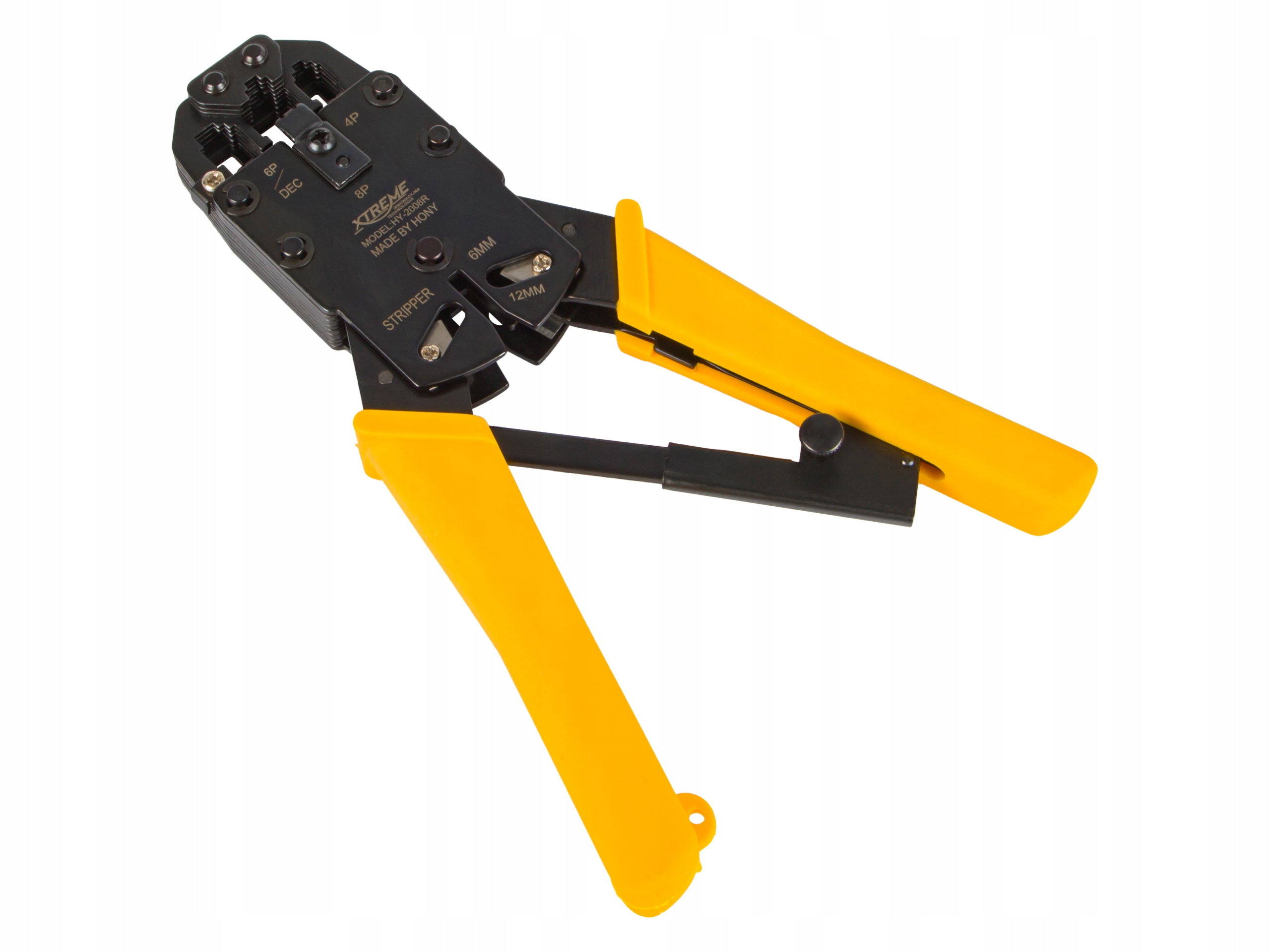 Сам кримпер изготовлен из металлических сплавов высочайшего качества, каждый его элемент идеально подогнан, что гарантирует правильное обжатие контактов. Устройство чрезвычайно универсально благодаря возможности обжима вилок RJ45, RJ11, RJ12, а это значит, что с его помощью можно обжимать самые популярные телефонные и компьютерные вилки. Кроме того, с его помощью мы можем разрезать кабель и снять изоляцию.