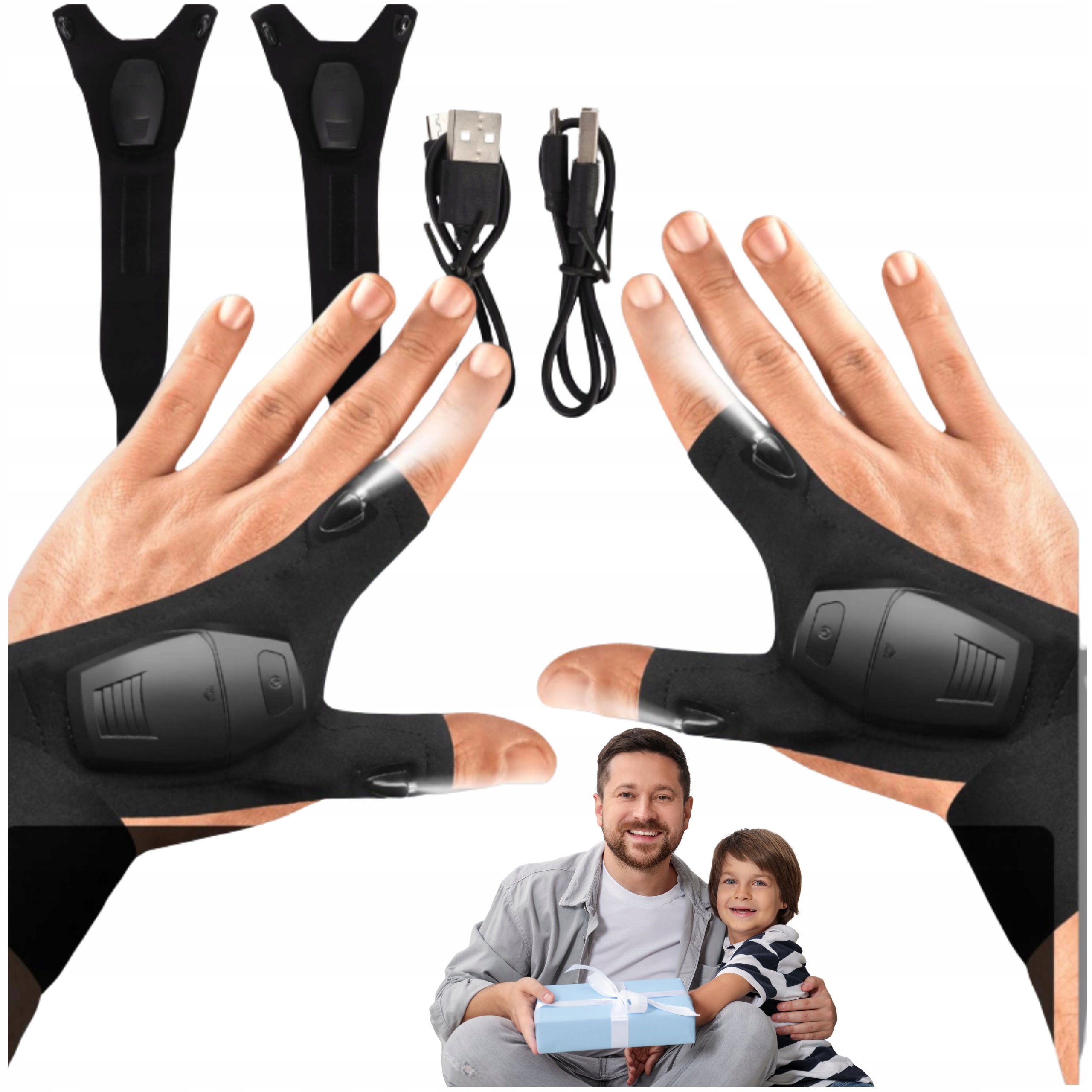 2x РУКАВИЧКИ З LED ЛІХТАРИКОМ ДЛЯ МАЙСТЕРНІ, МЕХАНІКА, СВІТЛОДІОДНІ РОБОЧІ РУКАВИЧКИ