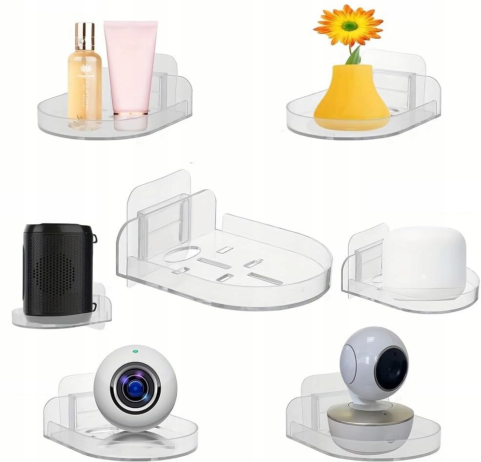 Вы получите 2 прозрачных пластиковых кронштейна, предназначенных для надежного крепления камер видеонаблюдения, радионянь, интеллектуальных колонок и мелкой электроники.