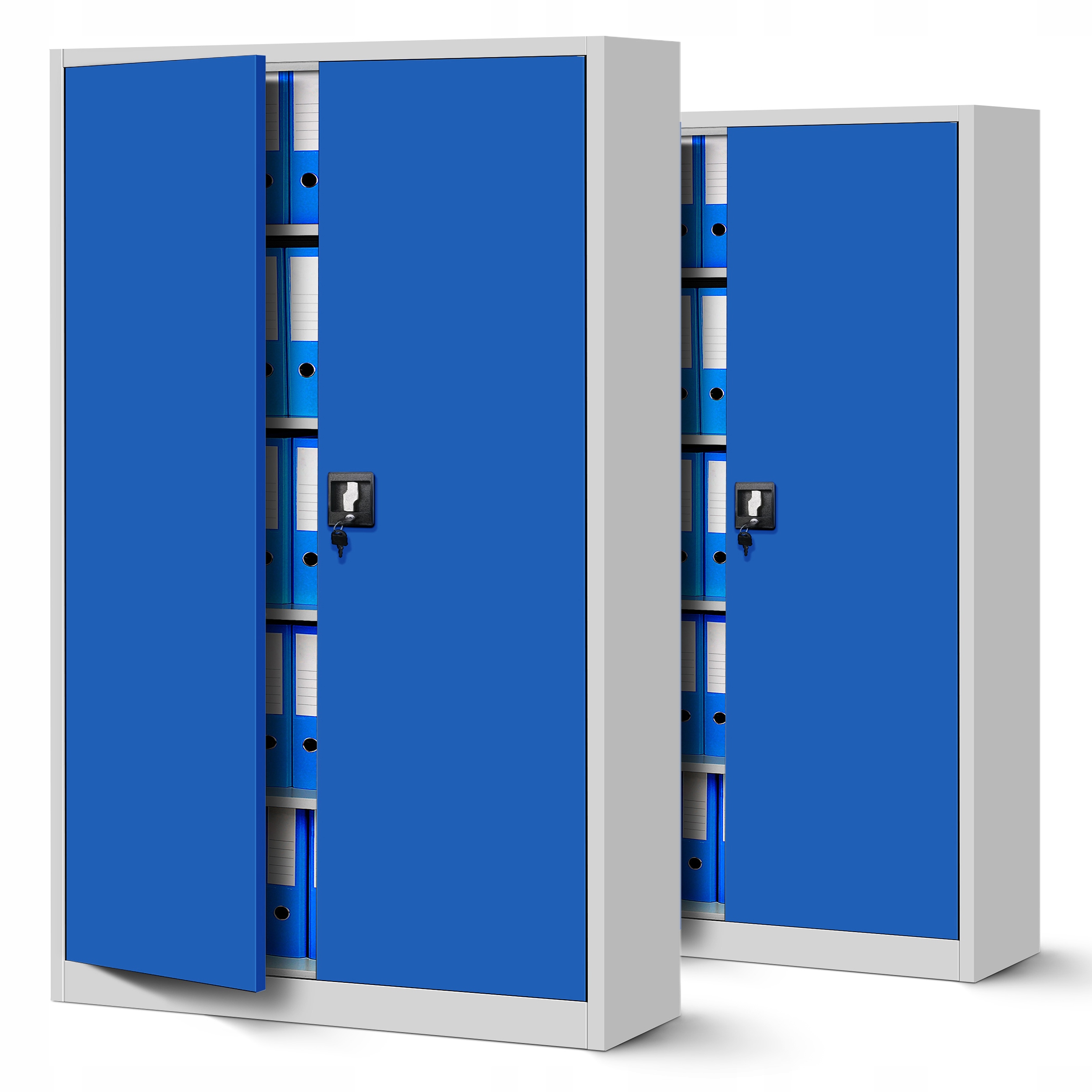 2x Широка металева офісна шафа для файлів JAN NOWAK JAN II сірий і синій