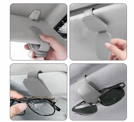 Магнитный дизайн Этот автомобильный держатель для очков оснащен магнитной присоской, которая обеспечивает правильное прилегание зажимов, их нелегко упасть, минималистичный дизайн дополняет интерьер вашего автомобиля. Мягкая кожа окружает весь зажим для очков и гарантирует, что он не повредит козырек или очки.