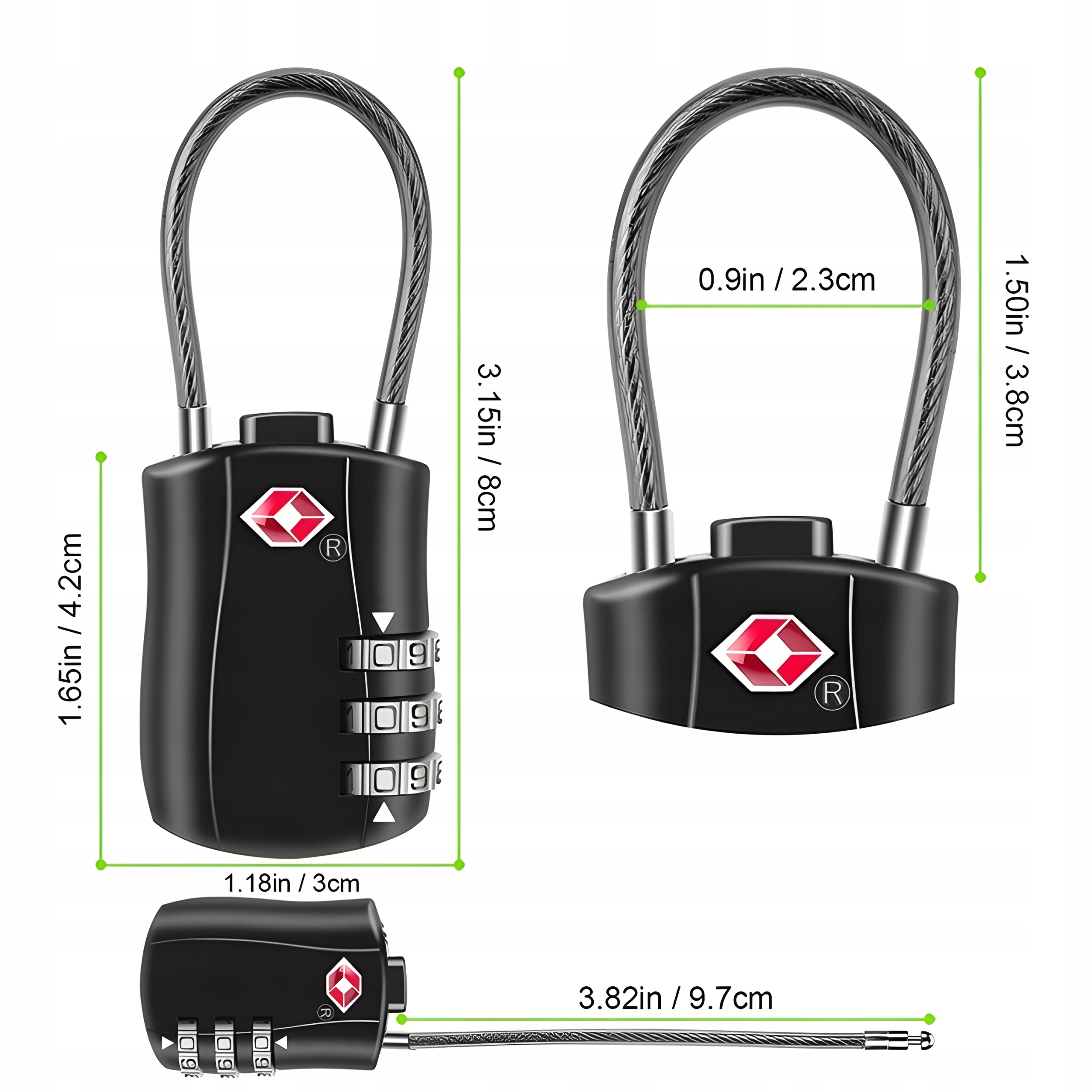 2X TSA Padlock System для шифра для багажного чемодана с защитным кабелем