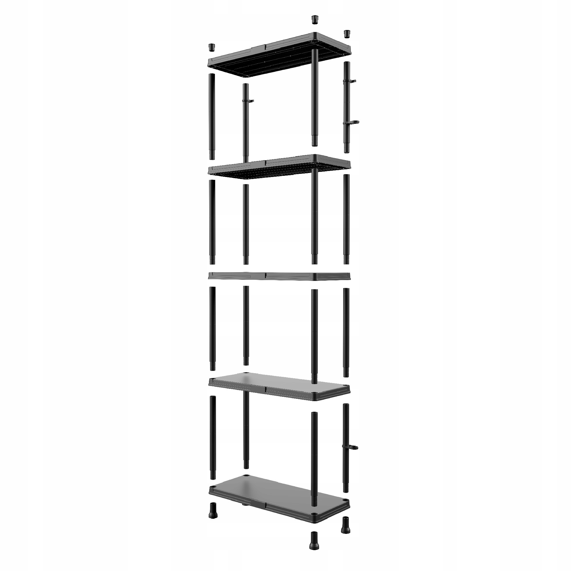 Система стоек была разработана таким образом, чтобы обеспечить стабильность и безопасность использования и в то же время легкая установка и разборка . Простой механизм сборки означает, что вам не нужны специализированные инструменты, чтобы собрать его - целое можно легко установить за короткое время. Кроме того, можно подключить несколько полков друг с другом, со специальными разъемами, включенными в набор, и прикрепить их к стене.