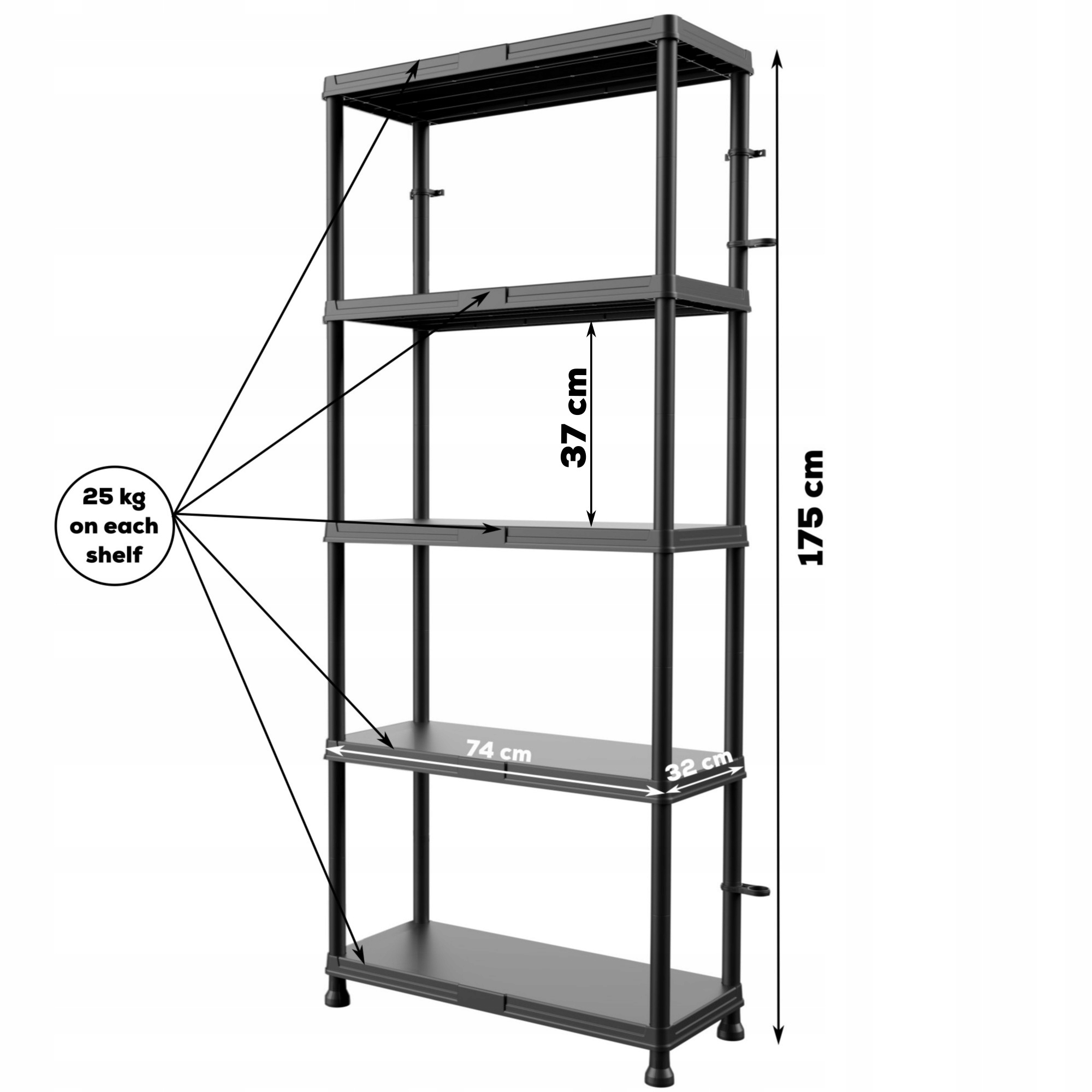Размеры стойки делают его Compact и в то же время достаточно емкость для размещения различных типов расходных материалов. Каждое из полков стойки имеет грузоподъемность до 25 кг , благодаря которой вы можете хранить как легкие элементы, так и более тяжелые предметы , например, Краска контейнеров, садовое оборудование или автомобильные аксессуары.
