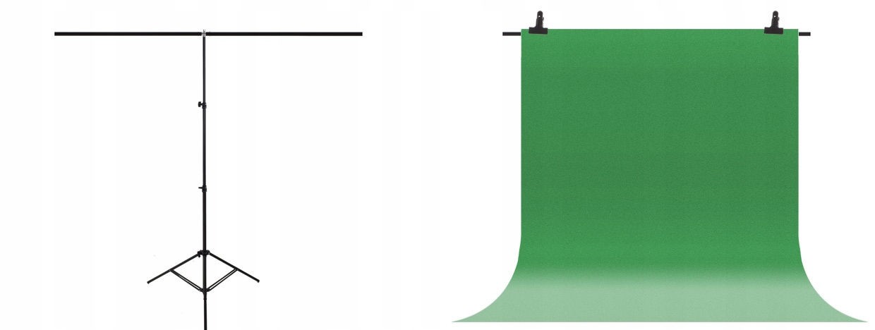 Основой создания домашней фотостудии является рамка для подвешивания фонов с базовым фотографическим фоном. Зеленый цвет фона позволяет фотографировать и снимать в технике GreenScreen (цветовая манипуляция), он обеспечивает отличные условия для фотосъемки с эффектами, портретной фотографии, предметной фотосъемки или создания простой «виртуальной телестудии». Включенная непрерывная подсветка позволяет постоянно просматривать результаты в камере (телефоне) перед тем, как спустить затвор.