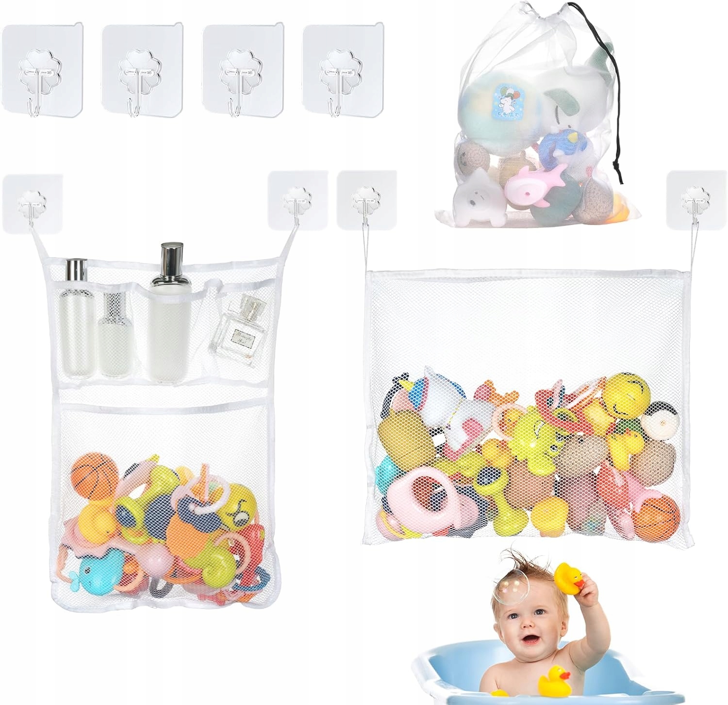 Сетчатая сумка для детских игрушек и шампуня — идеально подходит для ванны и душа с присосками.