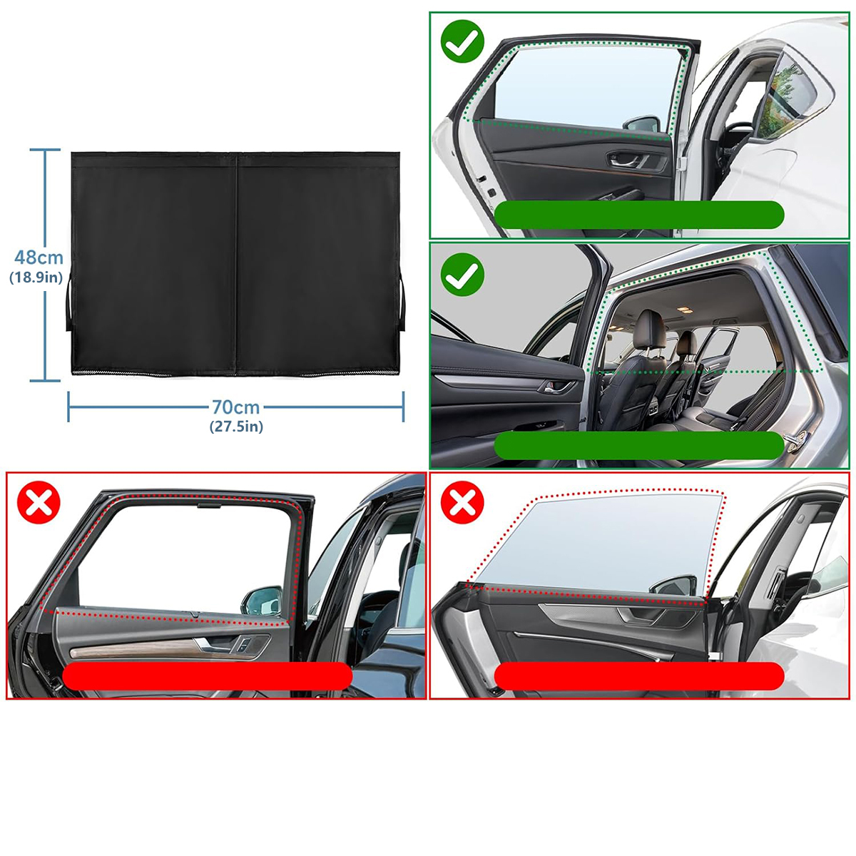 Наш солнцезащитный крем на автомобильном стекле состоит из двух слоев материала: один - полупрозрачная сетка, а другой - непрозрачная ткань затенения. Вы можете выбрать между полным или частичным затенением, в зависимости от ваших потребностей. Только для задних боковых окон во время вождения! Не используйте в окнах, ограничивающих видимость драйвера.