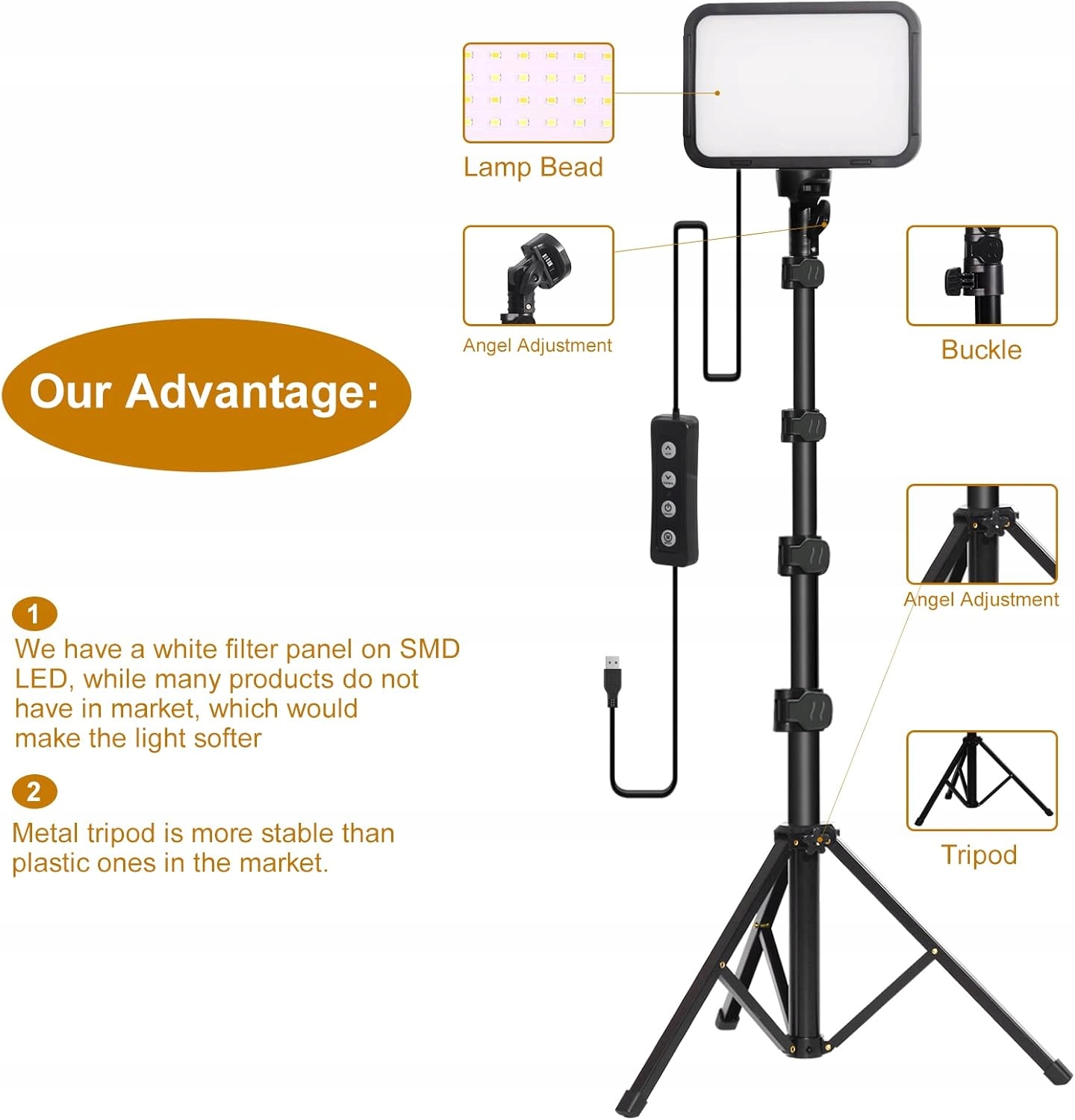 - Видеолампу можно идеально расположить на столе благодаря штативу.