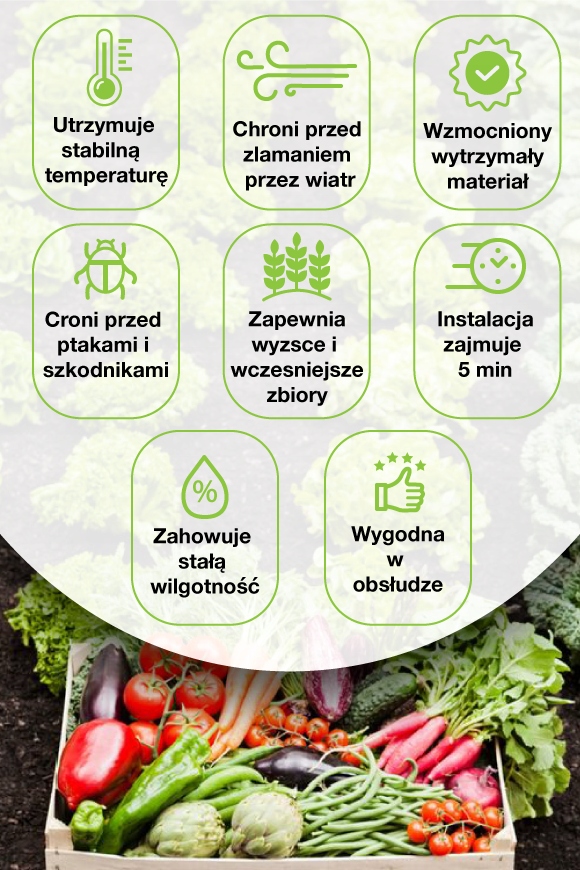 Идеально подходит для выращивания овощей и других растений, эффективно защищает их при любых погодных условиях.
