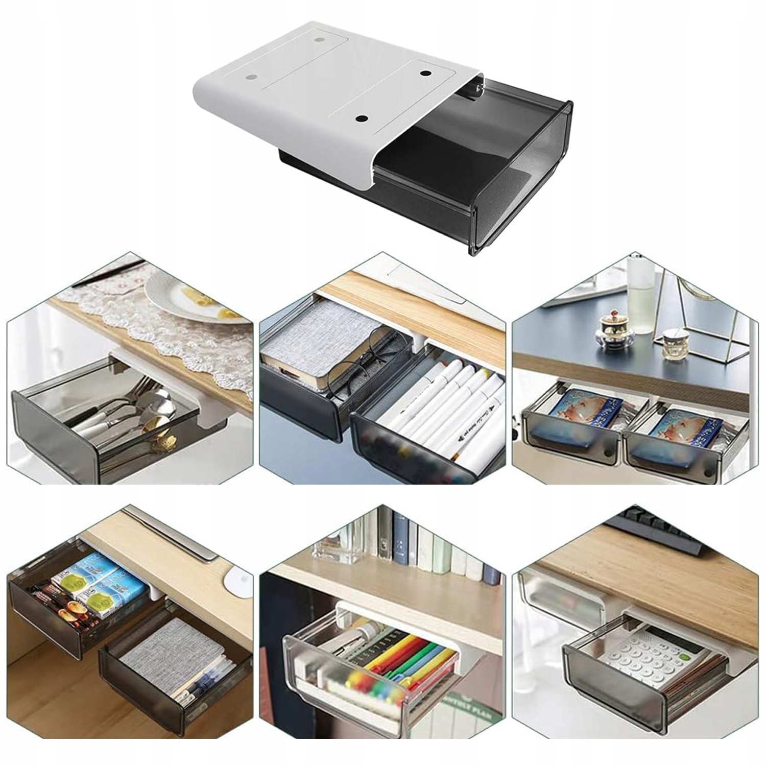 2x szuflada pod blat biurko wysuwana zestaw samoprzylepna ukryta organizer