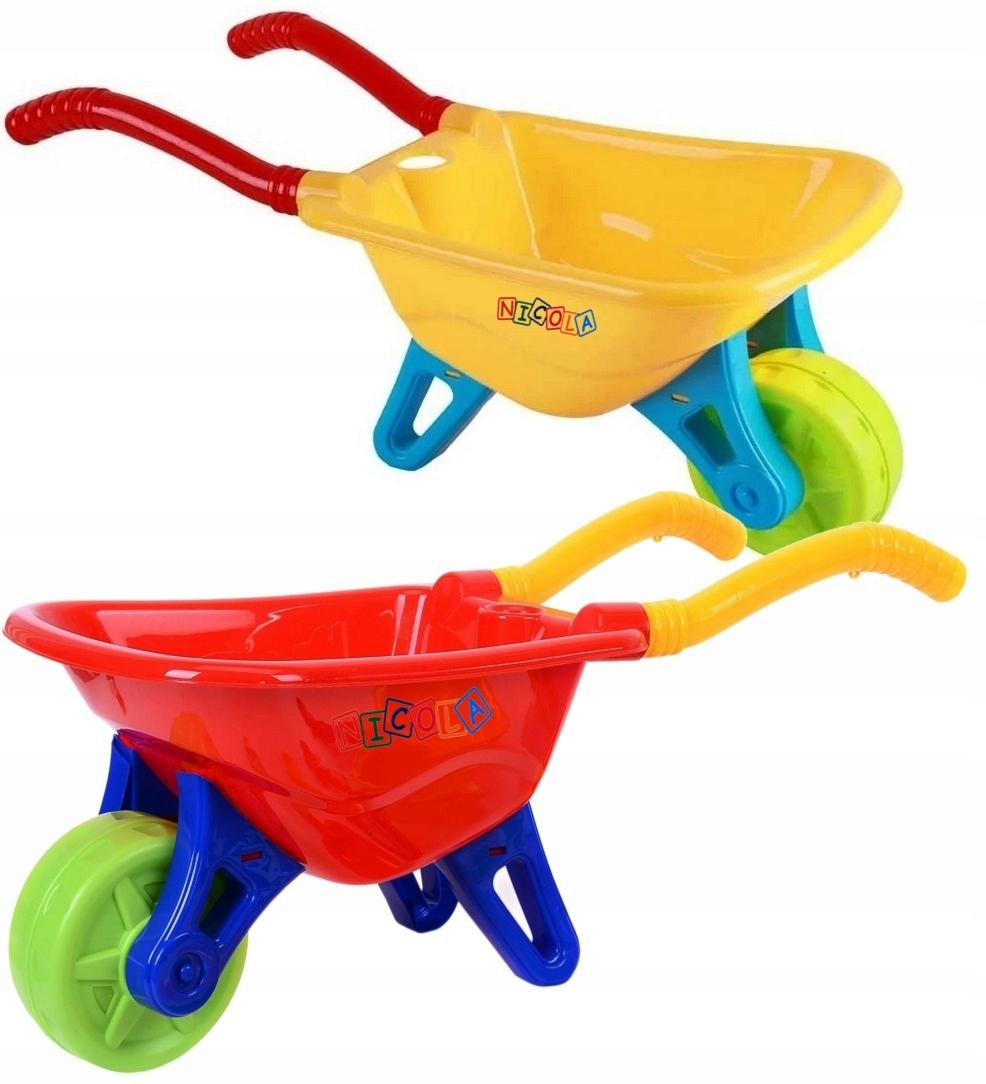 Тачка имеет яркие цвета, привлекающие внимание ребенка
