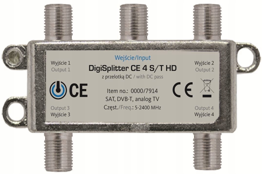 Сплиттер CE 4 S/T HD характеризуется широким диапазоном поддерживаемых частот 4-2400МГц.