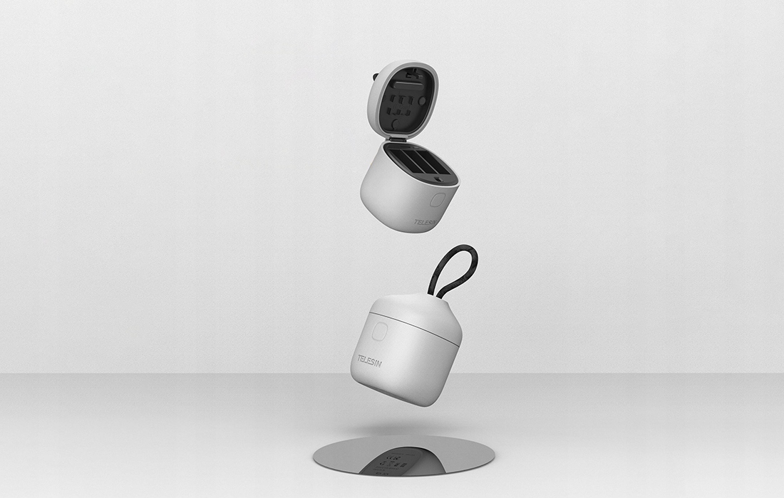 Зарядное устройство имеет стильный и функциональный дизайн. Позволяет хранить 3 батареи и 3 TF-карты. Он весит всего 147,6 г, а благодаря компактному размеру его легко поместить в рюкзак или сумочку. Транспортировку устройства облегчает короткий шнурок, с помощью которого его можно прикрепить к сумке или повесить на палец. Более того, класс водонепроницаемости IP54 означает, что вам не придется беспокоиться о случайных брызгах на зарядное устройство.