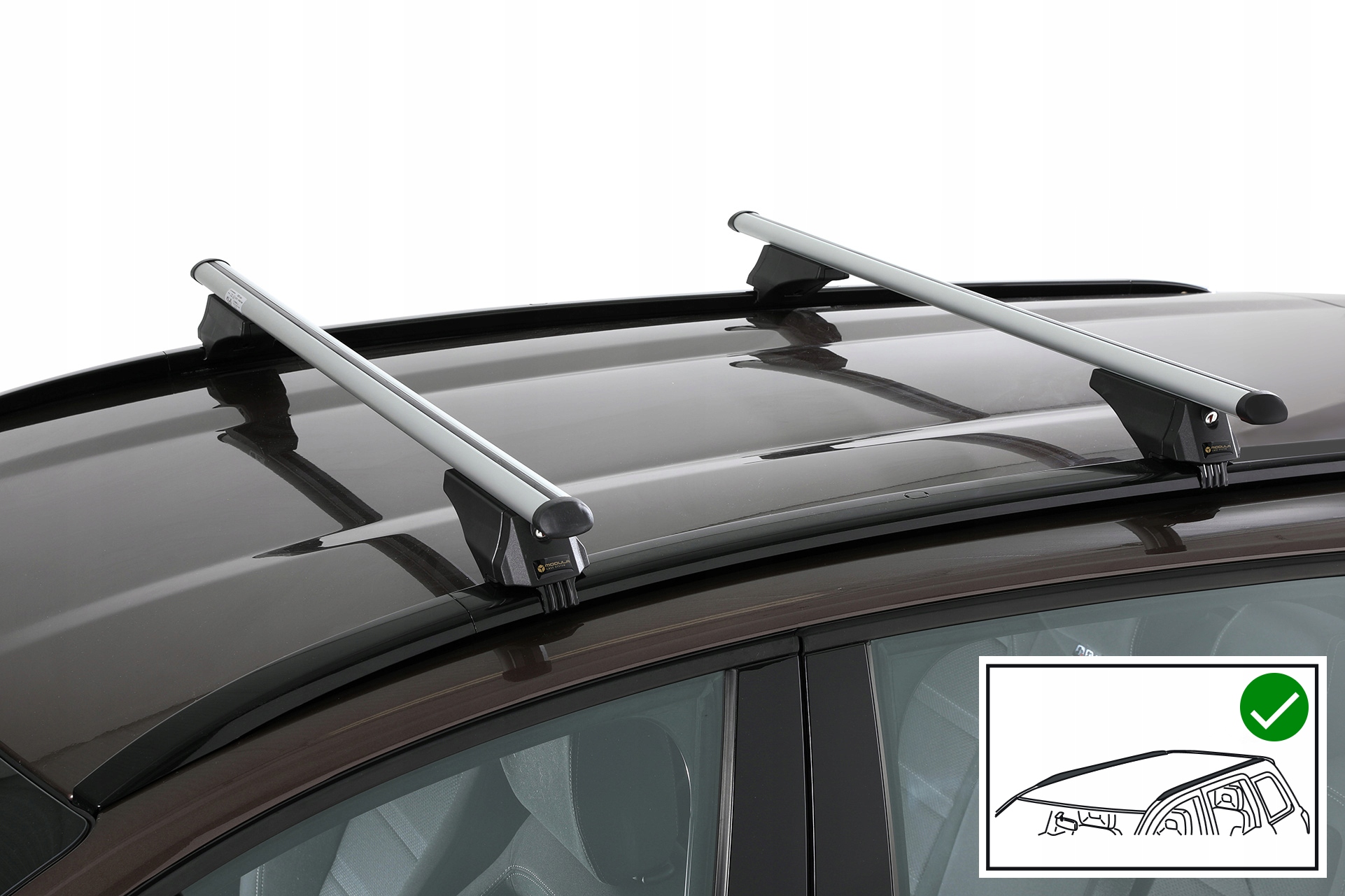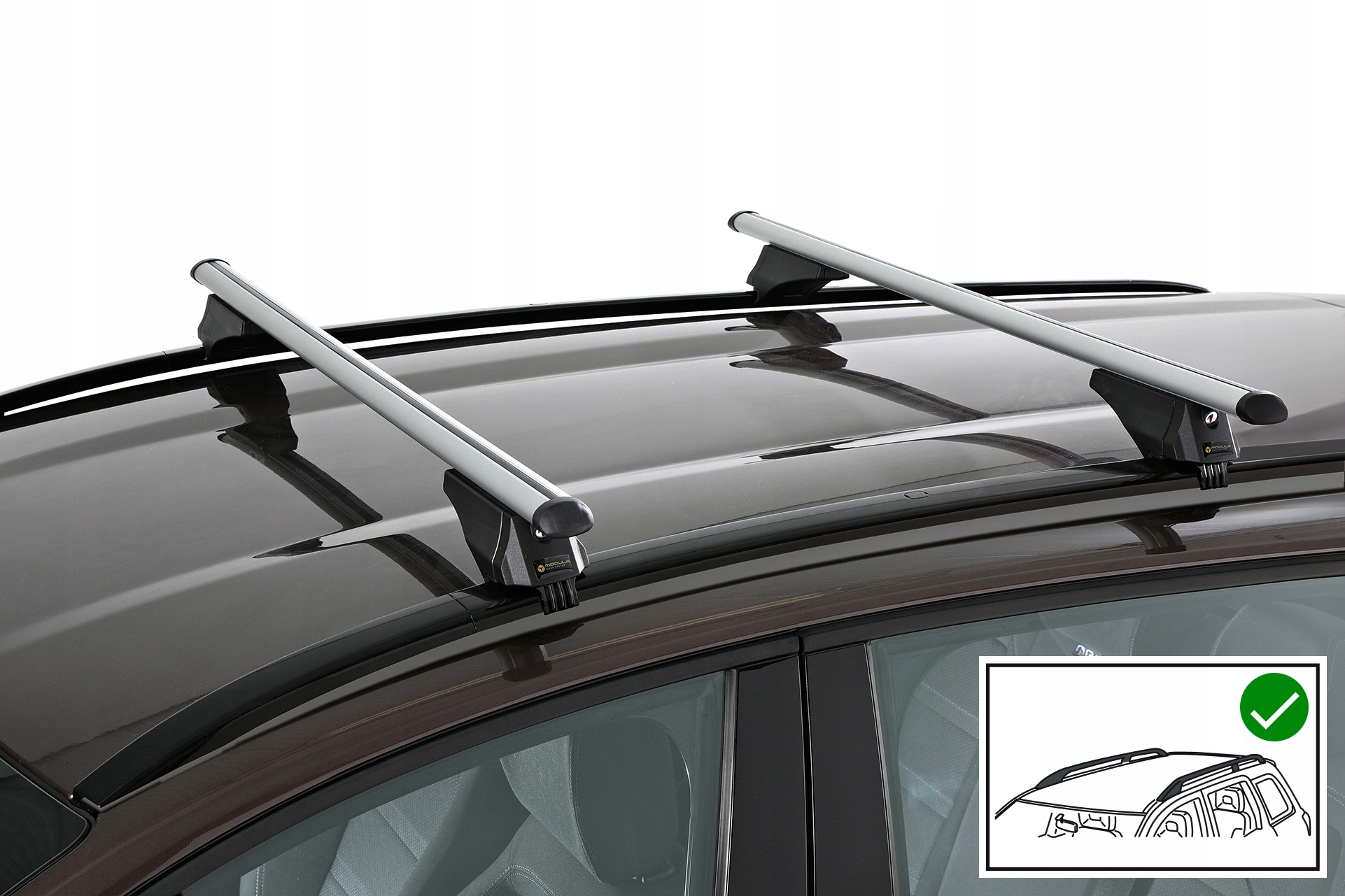 <ул>Багажник подходит для большинства автомобилей со стандартными (открытыми) и встроенными (закрытыми) рейлингами на крыше.