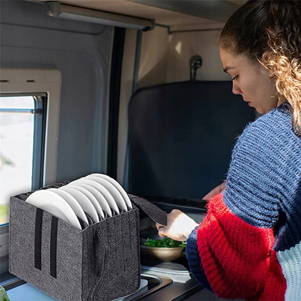 🔵🔵 [Шумоподавление] не дребезжит во время езды, подставка для походного подноса на 8 тарелок и сумка для чашек на 6 чашек, практичный фетровый органайзер для ящиков, шкафов и полок, идеально подходит для кемперов или кемперов.