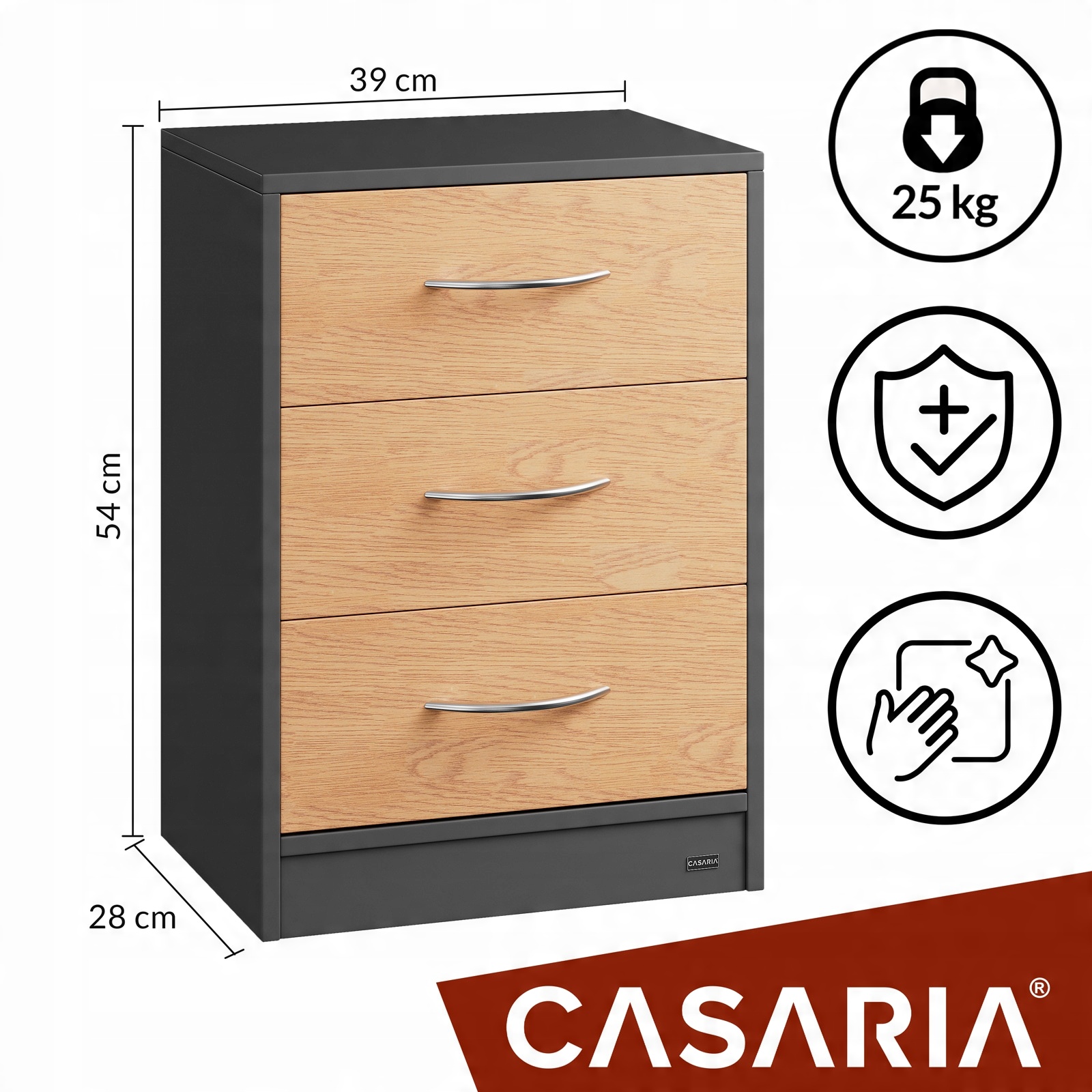 При высоте 54 см комод Количество ящиков также подходит для кроватей с подпружиненным матрасом и легко доступно.