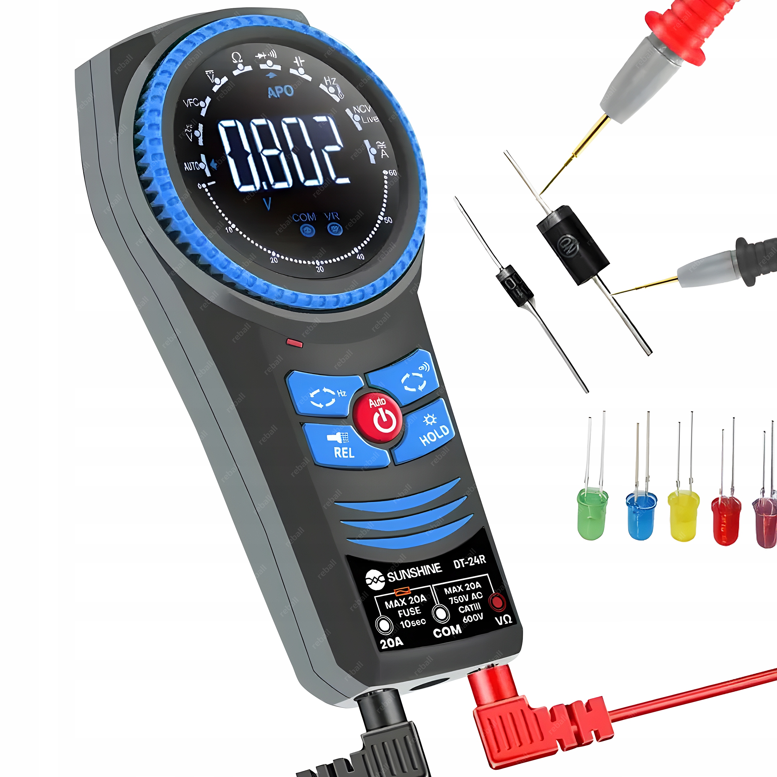 Интеллектуальный мультиметр Sunshine DT-24R — это современное диагностическое устройство, оснащенное цветным ЖК-дисплеем и интуитивно понятной ручкой для быстрого выбора функций измерения.