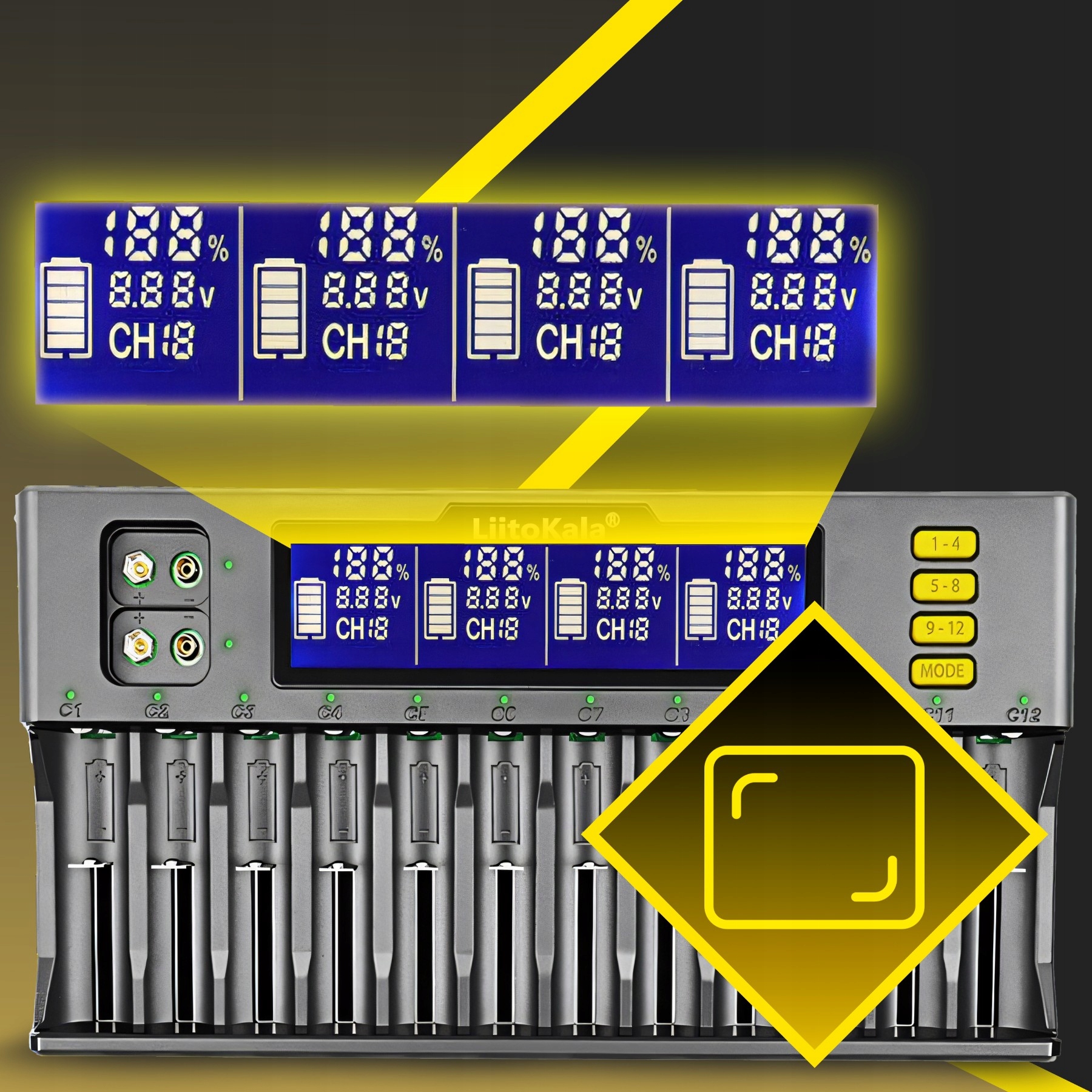 Благодаря 12 независимым зарядным каналам это зарядное устройство позволяет заряжать несколько элементов одновременно, что делает его идеальным решением для домашнего использования или в профессиональных мастерских.