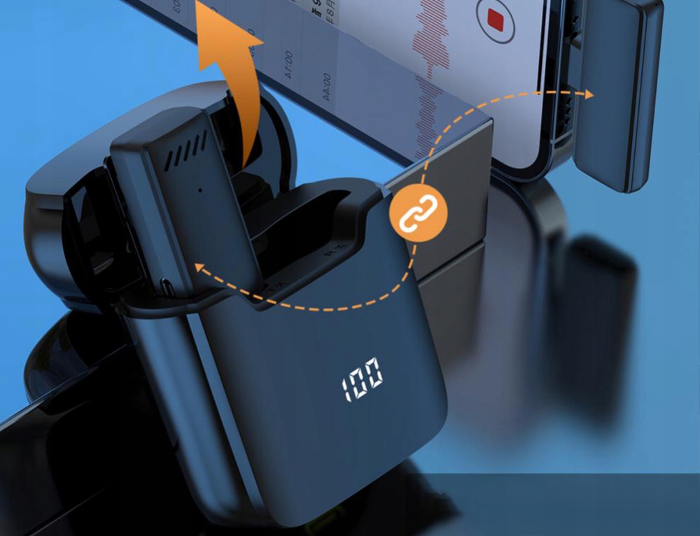 Беспроводной микрофон состоит из двух частей: одна — передатчик микрофона, другая — приемник. Его можно использовать для прямой онлайн-трансляции, видеозаписи видеоблогов, программных интервью, записи, видеообучения и других случаев. В комплект входит чехол, позволяющий зарядить микрофон до 5 раз